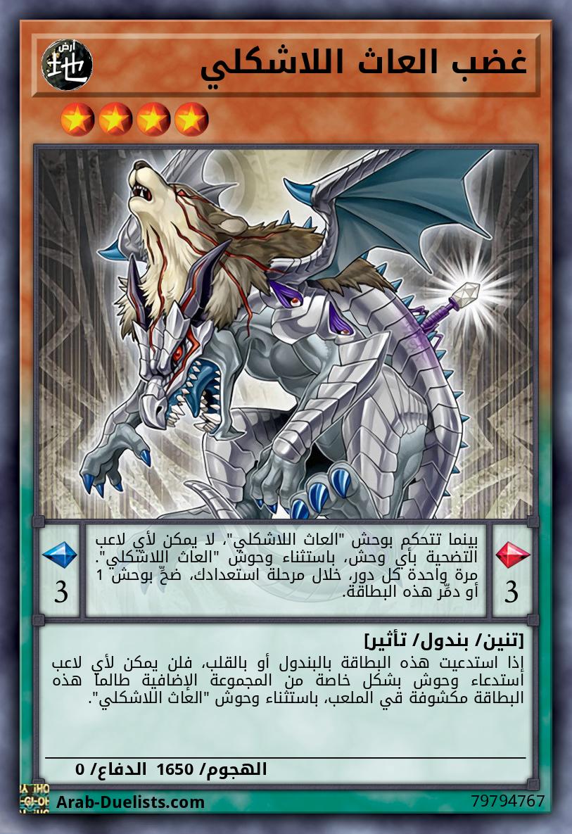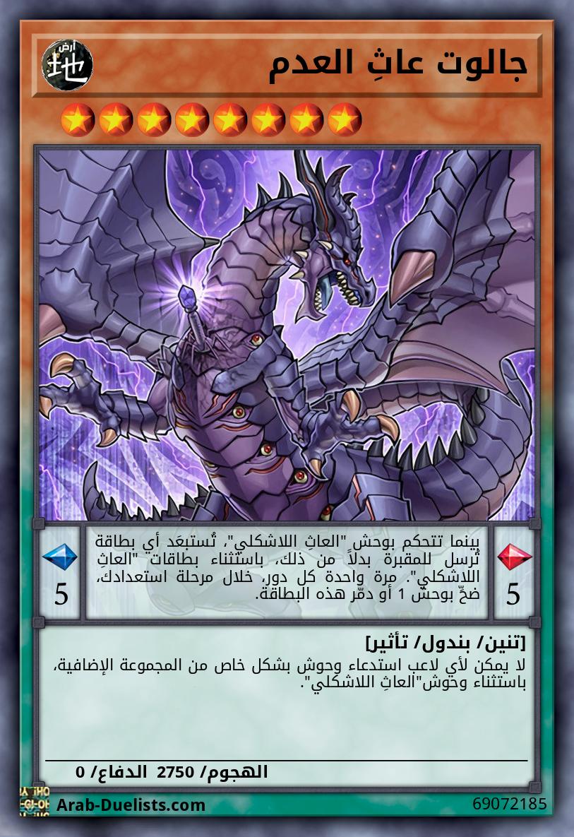إذا استدعيت هذه البطاقة بالبندول أو بالقلب، فلن يمكن لأي لاعب استدعاء وحوش بشكل خاصة من المجموعة الإضافية طالما هذه البطاقة مكشوفة قي الملعب، باستثناء وحوش "العاث اللاشكلي".