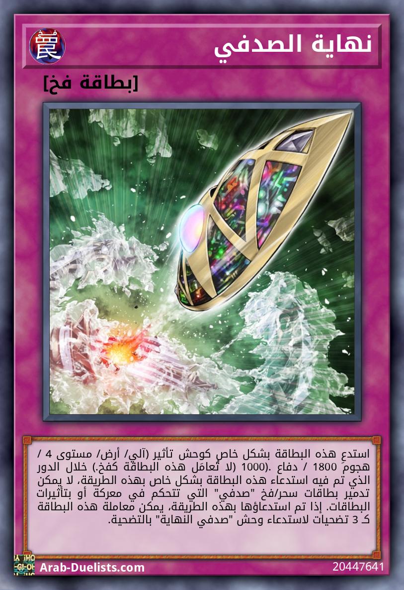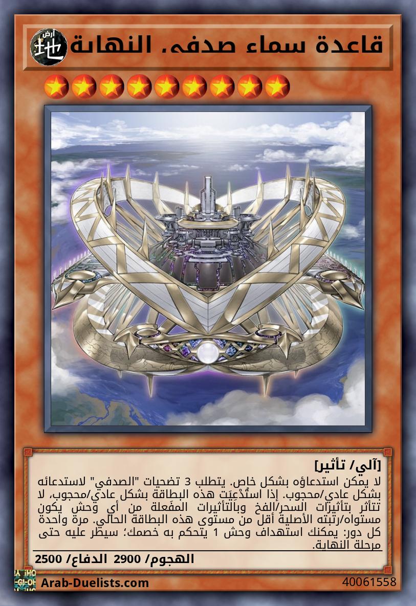 لا يمكن استدعاؤه بشكل خاص. يتطلب 3 تضحيات "صدفي" لاستدعائه بشكل عادي/محجوب. إذا استُدْعِيَت هذه البطاقة بشكل عادي/محجوب، لا تتأثر بالتأثيرات المُفعلة للسحر/الفخ وبالتأثيرات المُفَعلة من أي وحش يكون مستواه/رتبته الأصلية أقل من مستوى هذه البطاقة الحالي. تخسر جميع الوحوش الذي تم استدعاؤهم بشكل خاص 500 نقطة هجوم و دفاع. مرة كل دور: يمكنك جعل خصمك يرسل وحش 1 من يده أو من جانبه من الملعب إلى المقبرة (من اختياره).