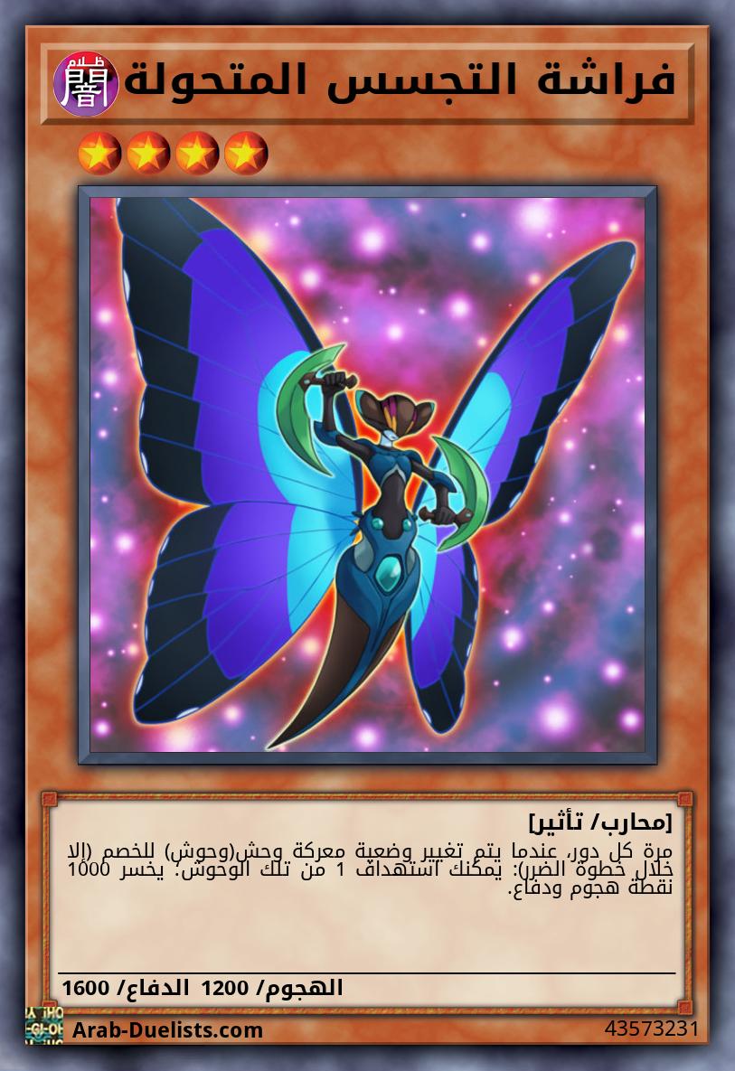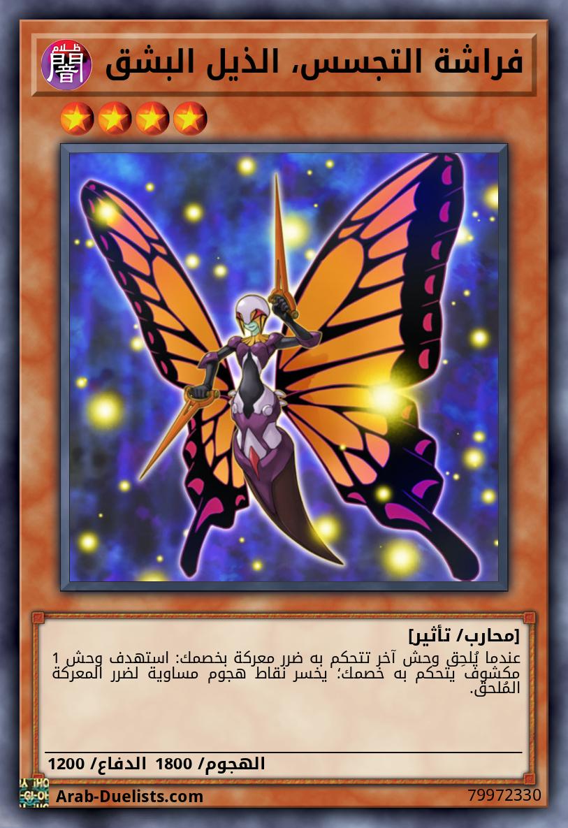 عندما تُرسَل هذه البطاقة من الملعب إلى المقبرة: يمكنك استدعاء وحش 1 "فراشة التجسس" من المستوى 4 أو أقل بشكل خاص من مجموعتك.