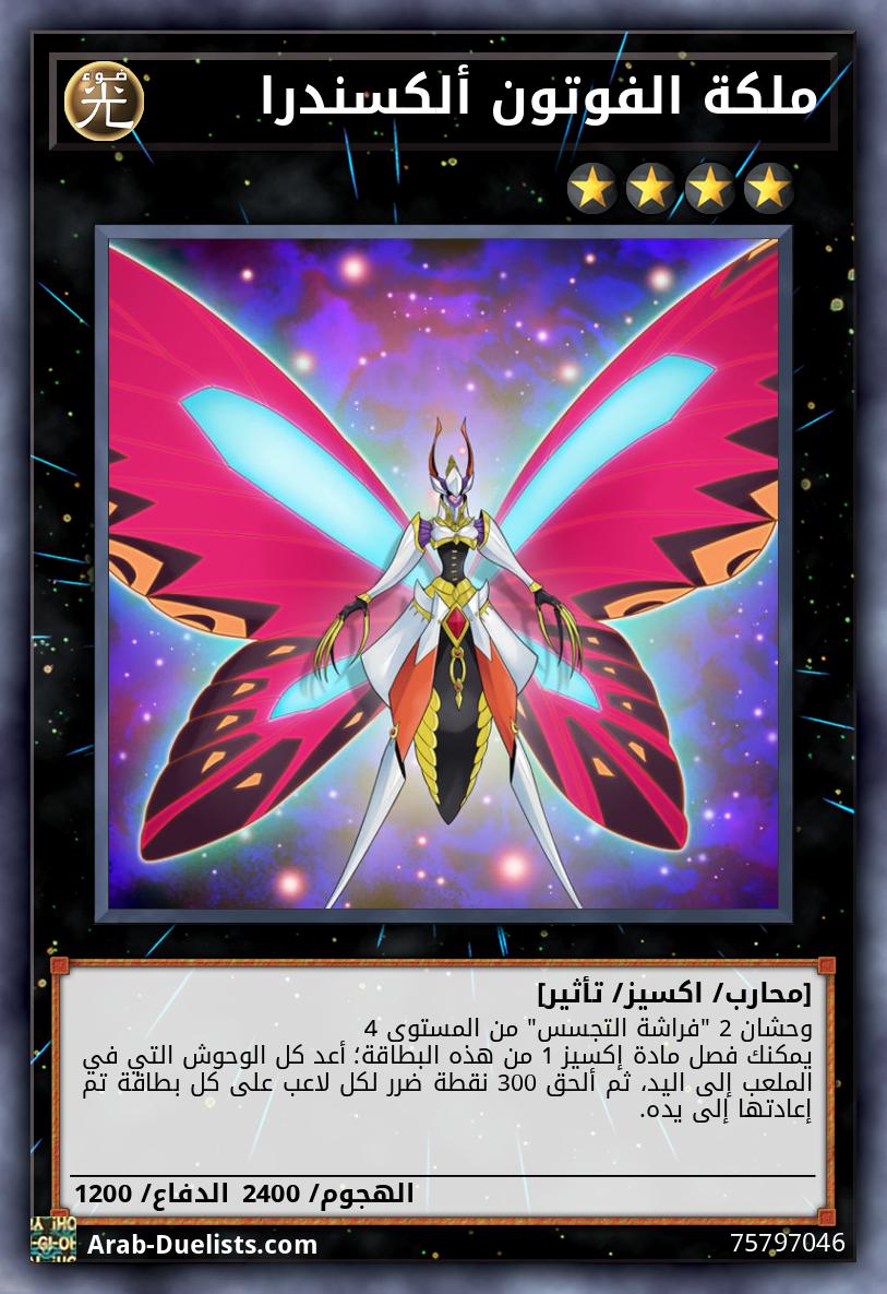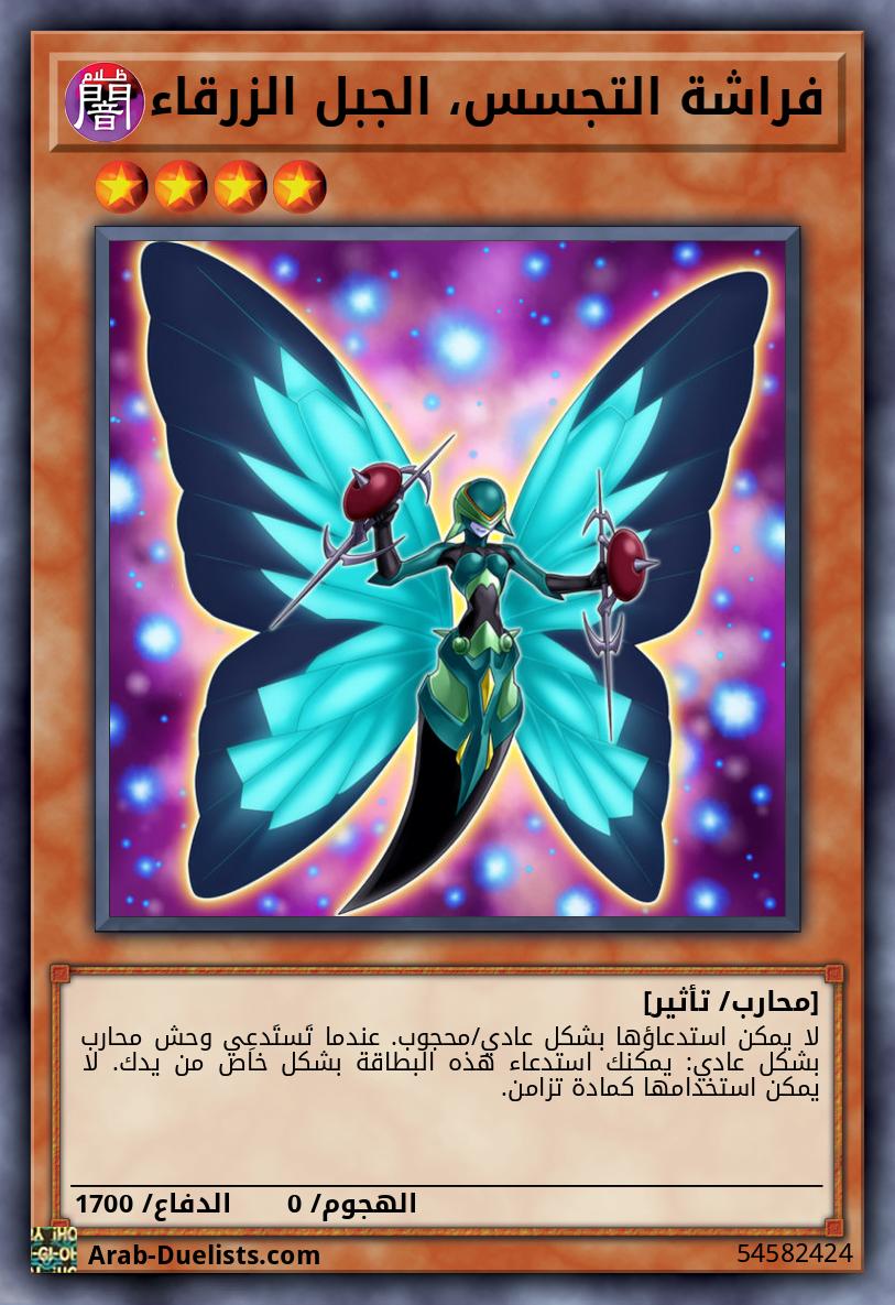 وحشان 2 "فراشة التجسس" من المستوى 4 يمكنك فصل مادة إكسيز 1 من هذه البطاقة؛ أعد كل الوحوش التي في الملعب إلى اليد، ثم ألحق 300 نقطة ضرر لكل لاعب على كل بطاقة تم إعادتها إلى يده.