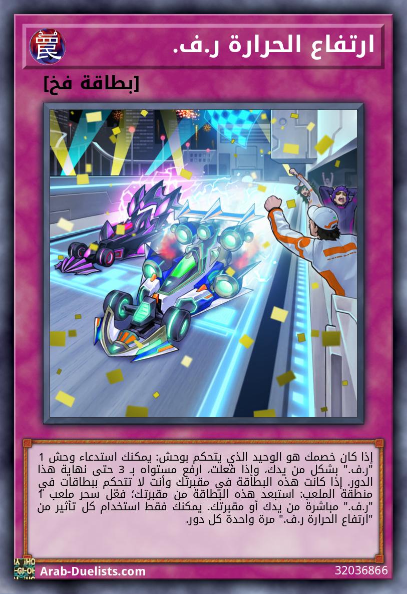 إذا كان خصمك هو الوحيد الذي يتحكم بوحش: يمكنك استدعاء وحش 1 "ر.ف." بشكل من يدك، وإذا فعلت، ارفع مستواه بـ 3 حتى نهاية هذا الدور. إذا كانت هذه البطاقة في مقبرتك وأنت لا تتحكم ببطاقات في منطقة الملعب: استبعد هذه البطاقة من مقبرتك؛ فعّل سحر ملعب 1 "ر.ف." مباشرة من يدك أو مقبرتك. يمكنك فقط استخدام كل تأثير من "ارتفاع الحرارة ر.ف." مرة واحدة كل دور.