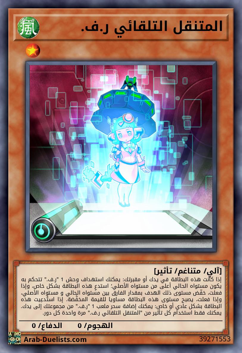 إذا كانت هذه البطاقة في يدك أو مقبرتك: يمكنك استهداف وحش 1 "ر.ف." تتحكم به يكون مستواه الحالي أعلى من مستواه الأصلي؛ استدعِ هذه البطاقة بشكل خاص، وإذا فعلت، خفّض مستوى ذلك الهدف بمقدار الفارق بين مستواه الحالي و مستواه الأصلي، وإذا فعلت، يصبح مستوى هذه البطاقة مساويا للقيمة المخفَّضة. إذا استُدعِيت هذه البطاقة بشكل عادي أو خاص: يمكنك إضافة سحر ملعب 1 "ر.ف." من مجموعتك إلى يدك. يمكنك فقط استخدام كل تأثير من "المتنقل التلقائي ر.ف." مرة واحدة كل دور.