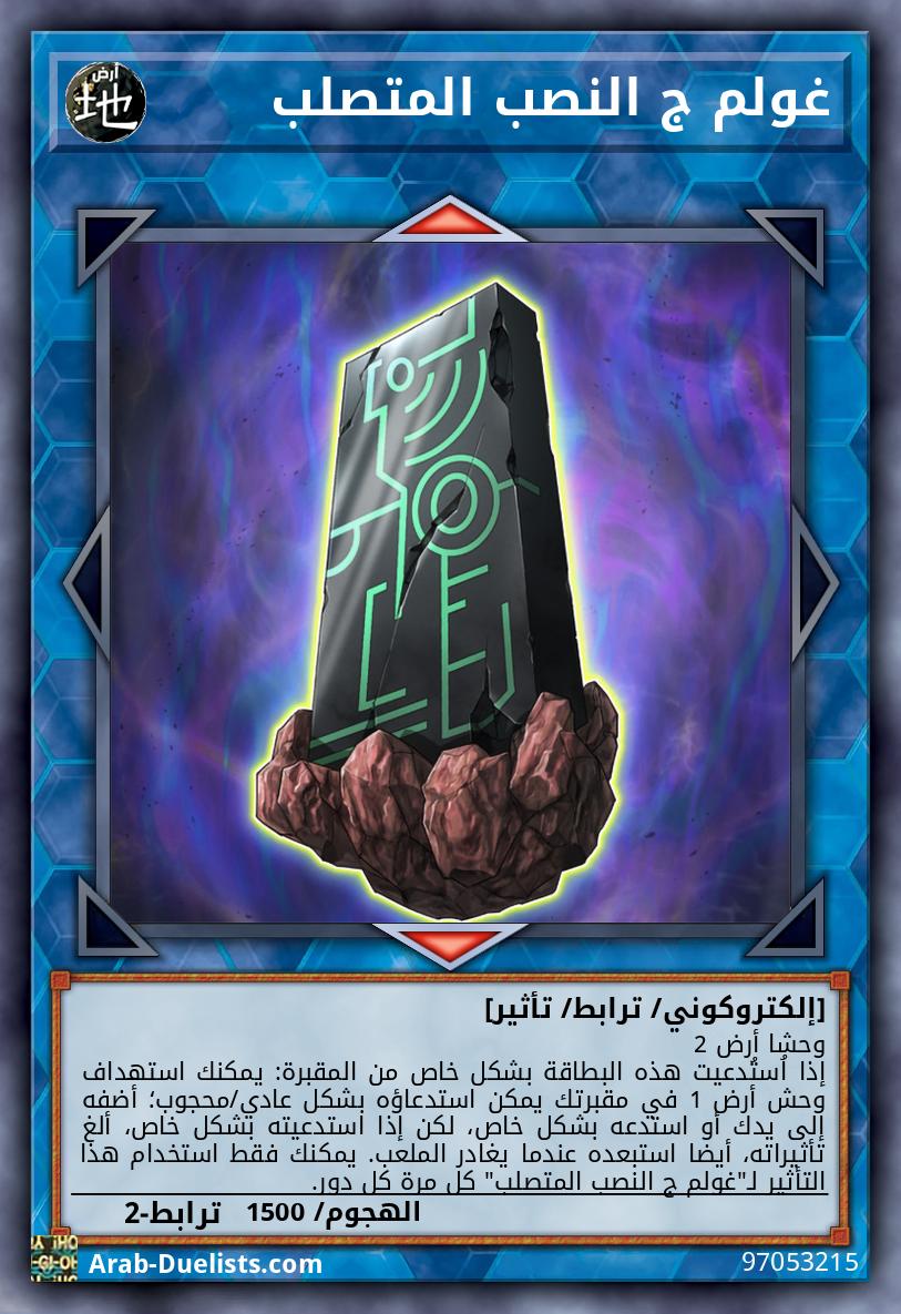 وحشا أرض 2 إذا اُستُدعيت هذه البطاقة بشكل خاص من المقبرة: يمكنك استهداف وحش أرض 1 في مقبرتك يمكن استدعاؤه بشكل عادي/محجوب؛ أضفه إلى يدك أو استدعه بشكل خاص، لكن إذا استدعيته بشكل خاص، ألغ تأثيراته، أيضا استبعده عندما يغادر الملعب. يمكنك فقط استخدام هذا التأثير لـ"غولم ج النصب المتصلب" كل مرة كل دور.