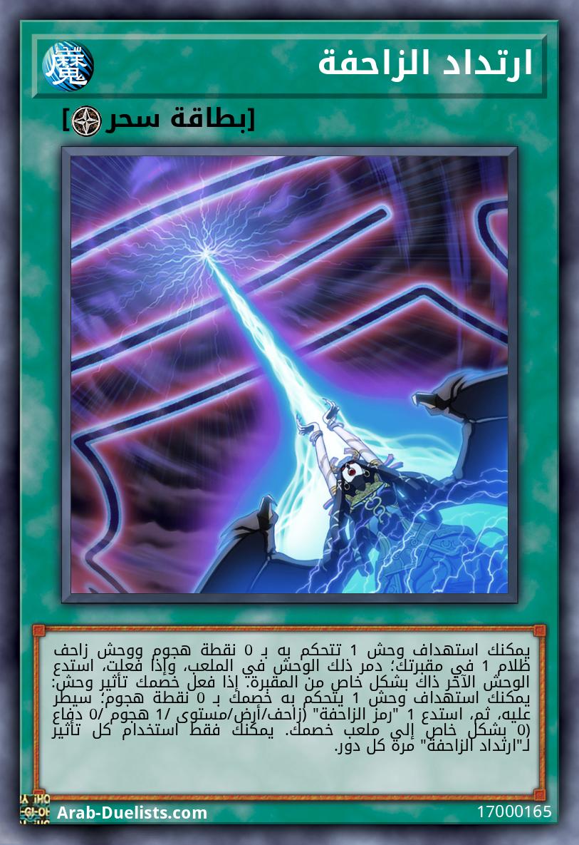 يمكنك استهداف وحش 1 تتحكم به بـ 0 نقطة هجوم ووحش زاحف ظلام 1 في مقبرتك؛ دمر ذلك الوحش في الملعب، وإذا فعلت، استدع الوحش الآخر ذاك بشكل خاص من المقبرة. إذا فعل خصمك تأثير وحش: يمكنك استهداف وحش 1 يتحكم به خصمك بـ 0 نقطة هجوم؛ سيطر عليه، ثم، استدع 1 "رمز الزاحفة" (زاحف/أرض/مستوى 1/ هجوم 0/ دفاع 0) بشكل خاص إلى ملعب خصمك. يمكنك فقط استخدام كل تأثير لـ"ارتداد الزاحفة" مرة كل دور.