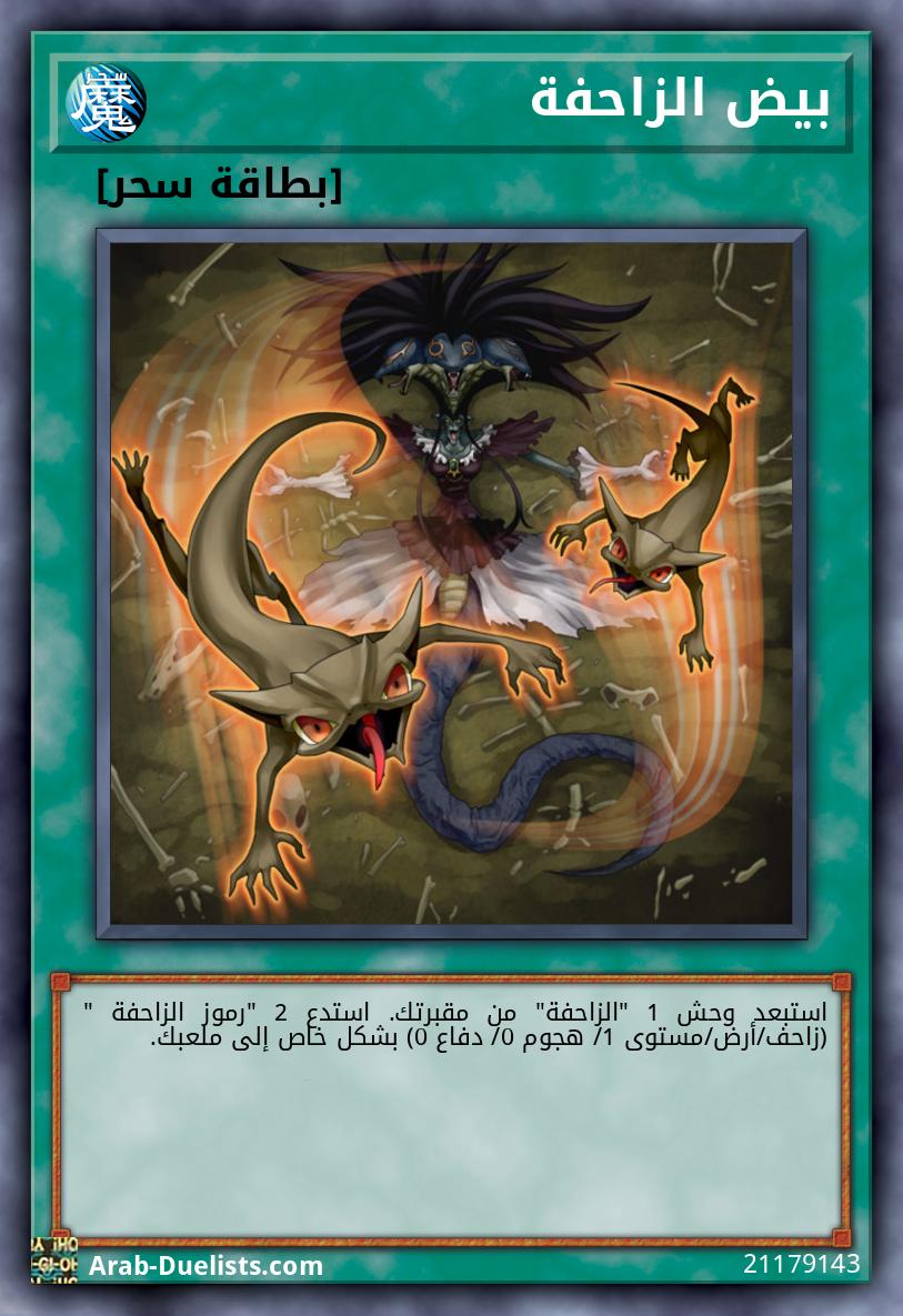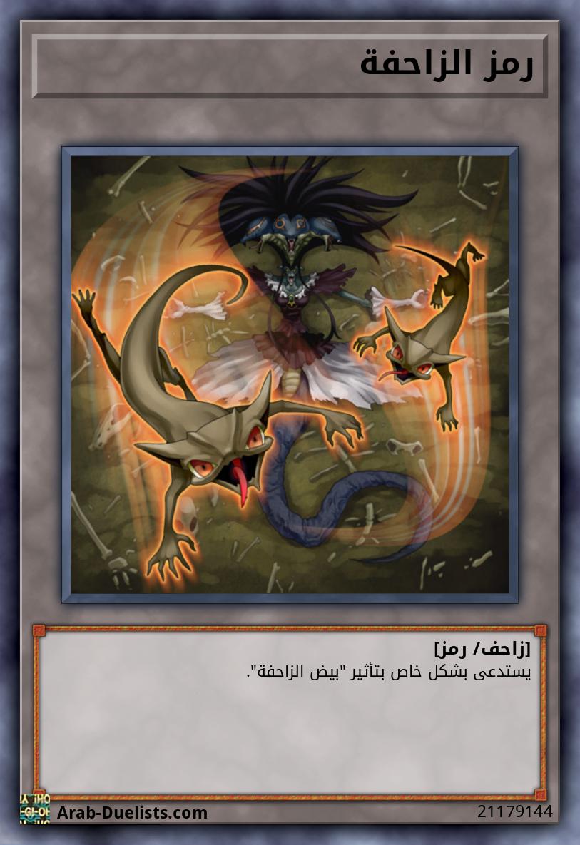 استبعد وحش 1 "الزاحفة" من مقبرتك. استدع 2 "رموز الزاحفة " (زاحف/أرض/مستوى 1/ هجوم 0/ دفاع 0) بشكل خاص إلى ملعبك.