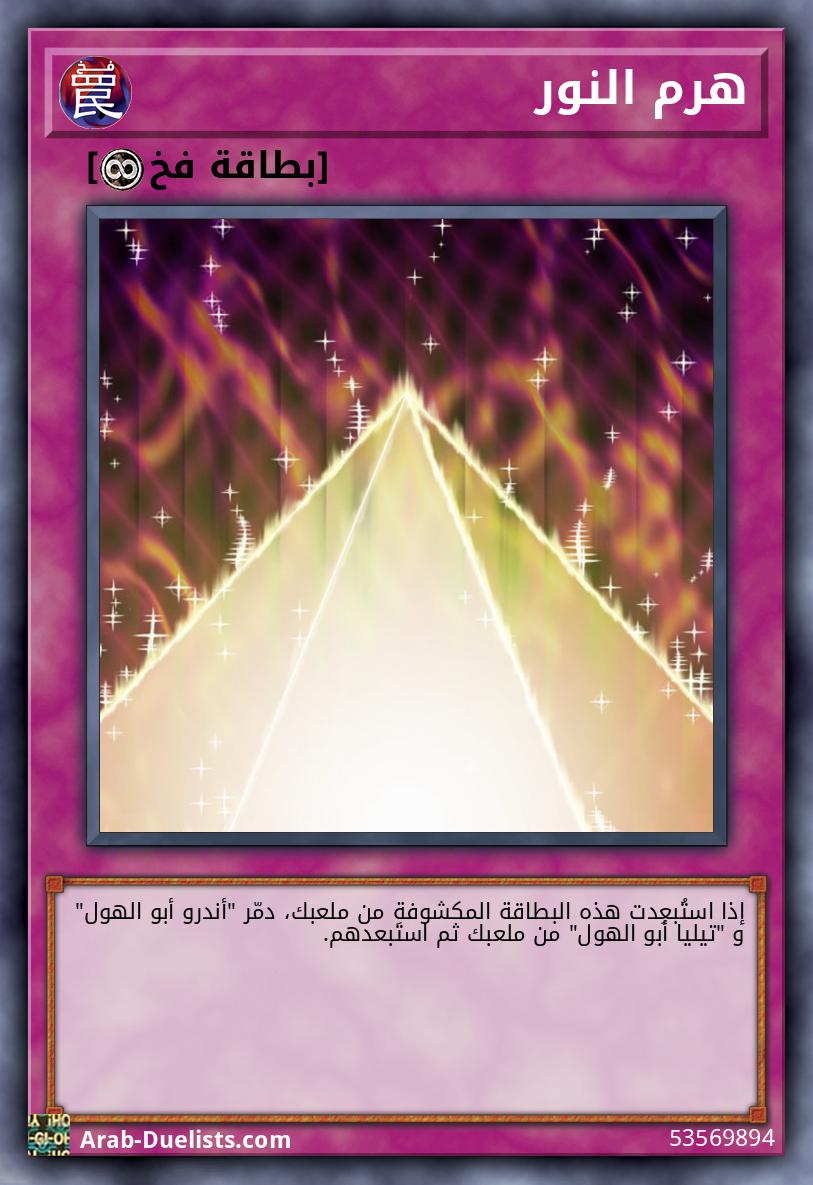 يمكنك دفع 500 نقطة حياة لاستدعاء هذه البطاقة بشكل خاص عندما يكون "هرم النور" في الملعب. لا يمكن لهذه البطاقة الهجوم خلال الدور الذي اُستُدعيت فيه بشكل عادي أو بشكل خاص. لا يمكن استدعاء هذه البطاقة بشكل خاص من المقبرة. إذا دَمّرت هذه البطاقة وحش في وضعية الدفاع بالمعركة، ألحق ضررًا بنقاط حياة خصمك مُساوٍ لنصف نقاط دفاع الوحش المُدَمر.