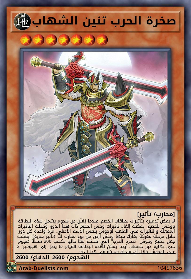 لا يمكن تدميره بتأثيرات بطاقات الخصم. عندما يُعْلَن عن هجوم يشمل هذه البطاقة ووحش للخصم: يمكنك إلغاء تأثيرات وحش الخصم ذاك هذا الدور، وكذلك التأثيرات المفعلة والتأثيرات على الملعب لوحوش بنفس الاسم الأصلي. مرة واحدة كل دور، خلال مرحلة معركة يعارك فيها وحش أرض من نوع محارب لك (تأثير سريع): يمكنك جعل جميع وحوش "صخرة الحرب" التي تتحكم بها حاليا تكسب 200 نقطة هجوم حتى نهاية دور خصمك، أيضا يمكن لهذه البطاقة القيام ما يصل إلى هجومين 2 على الوحوش خلال أي مرحلة معركة في هذا الدور.
