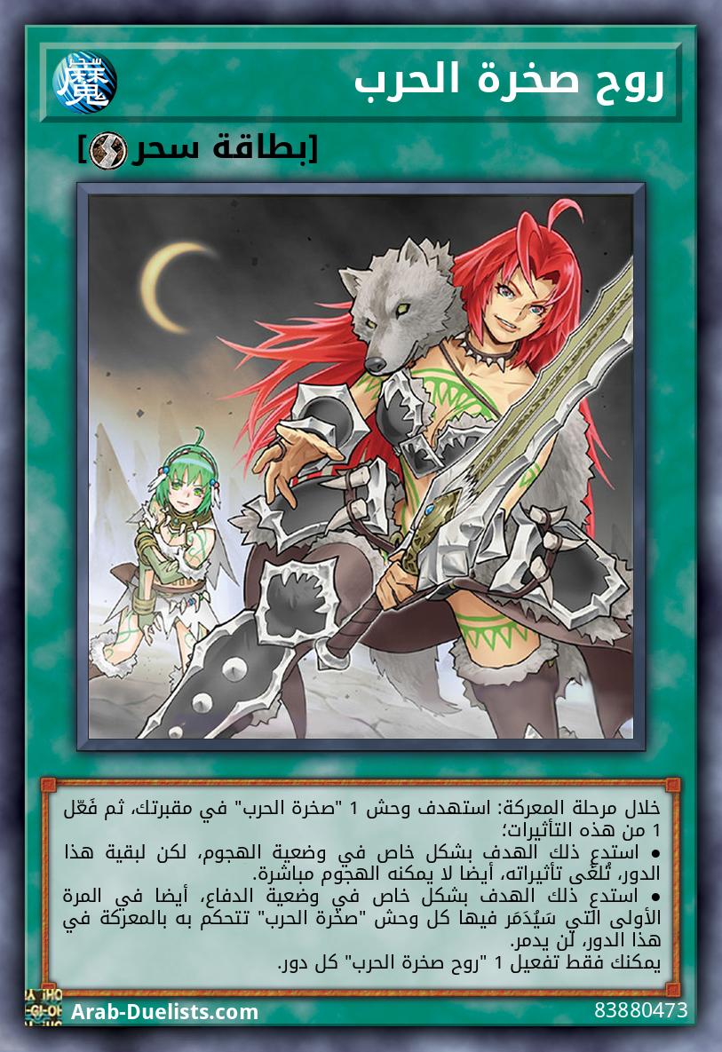 خلال مرحلة المعركة: استهدف وحش 1 "صخرة الحرب" في مقبرتك، ثم فَعّل 1 من هذه التأثيرات؛ ● استدعِ ذلك الهدف بشكل خاص في وضعية الهجوم، لكن لبقية هذا الدور، تُلغَى تأثيراته، أيضا لا يمكنه الهجوم مباشرة. ● استدعِ ذلك الهدف بشكل خاص في وضعية الدفاع، أيضا في المرة الأولى التي سَيُدَمَر فيها كل وحش "صخرة الحرب" تتحكم به بالمعركة في هذا الدور، لن يدمر. يمكنك فقط تفعيل 1 "روح صخرة الحرب" كل دور.