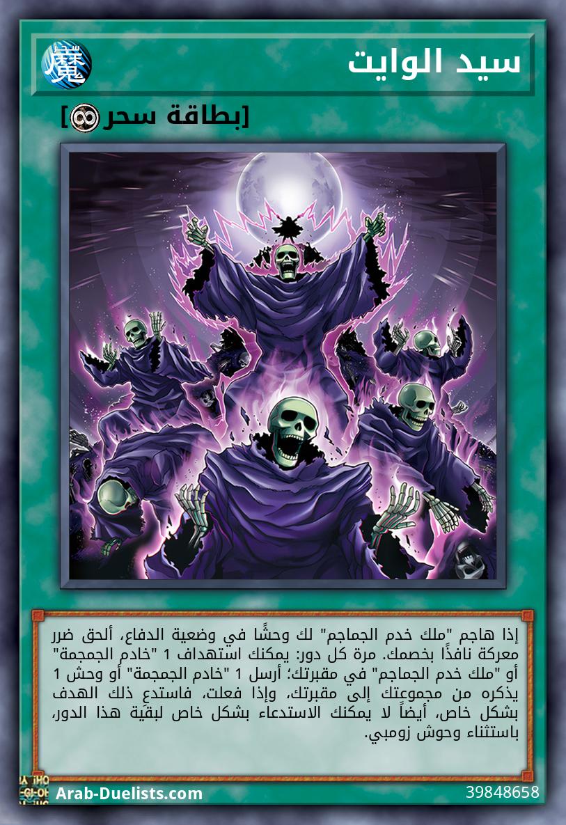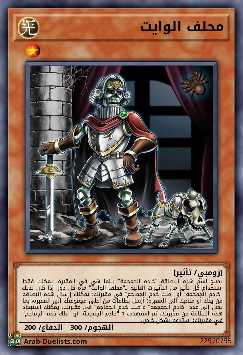 يصبح اسم هذه البطاقة "خادم الجمجمة" بينما هي في المقبرة. يمكنك فقط استخدام كل تأثير من التأثيرات التالية لـ"محلف الوايت" مرة كل دور. إذا كان لديك "خادم الجمجمة" أو "ملك خدم الجماجم" في مقبرتك: يمكنك إرسال هذه البطاقة من يدك أو ملعبك إلى المقبرة؛ أرسل بطاقات من أعلى مجموعتك إلى المقبرة، بما يصل إلى عدد "خادم الجمجمة" و"ملك خدم الجماجم" في مقبرتك. يمكنك استبعاد هذه البطاقة من مقبرتك، ثم استهدف 1 "خادم الجمجمة" أو "ملك خدم الجماجم" في مقبرتك؛ استدعه بشكل خاص.