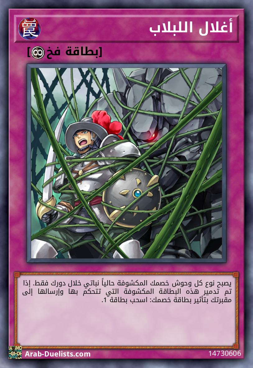 يصبح نوع كل وحوش خصمك المكشوفة حالياً نباتي خلال دورك فقط. إذا تم تدمير هذه البطاقة المكشوفة التي تتحكم بها وإرسالها إلى مقبرتك بتأثير بطاقة خصمك: اسحب بطاقة 1. |