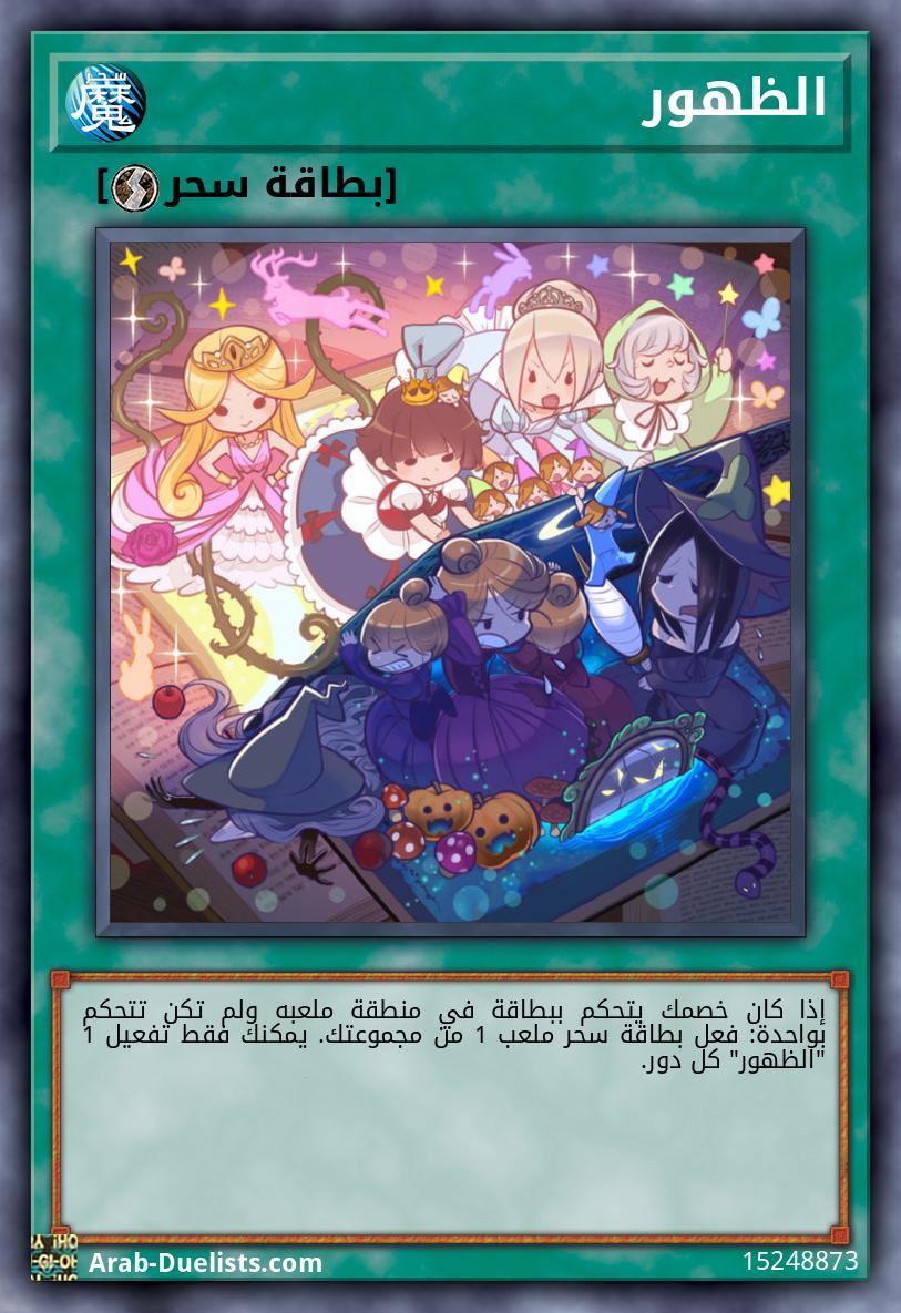 إذا كان خصمك يتحكم ببطاقة في منطقة ملعبه ولم تكن تتحكم بواحدة: فعل بطاقة سحر ملعب 1 من مجموعتك. يمكنك فقط تفعيل 1 "الظهور" كل دور. |