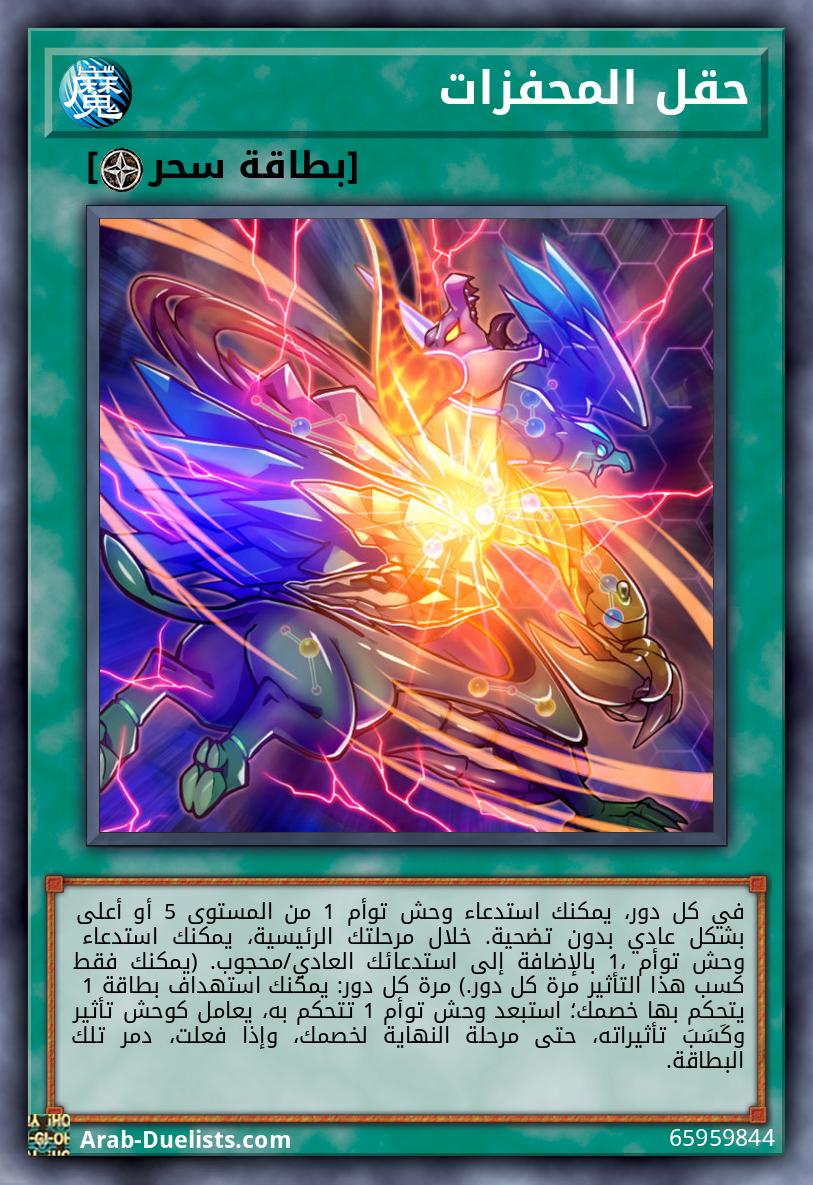 في كل دور، يمكنك استدعاء وحش توأم 1 من المستوى 5 أو أعلى بشكل عادي بدون تضحية. خلال مرحلتك الرئيسية، يمكنك استدعاء وحش توأم 1، بالإضافة إلى استدعائك العادي/محجوب. (يمكنك فقط كسب هذا التأثير مرة كل دور.) مرة كل دور: يمكنك استهداف بطاقة 1 يتحكم بها خصمك؛ استبعد وحش توأم 1 تتحكم به، يعامل كوحش تأثير وكَسَبَ تأثيراته، حتى مرحلة النهاية لخصمك، وإذا فعلت، دمر تلك البطاقة. |