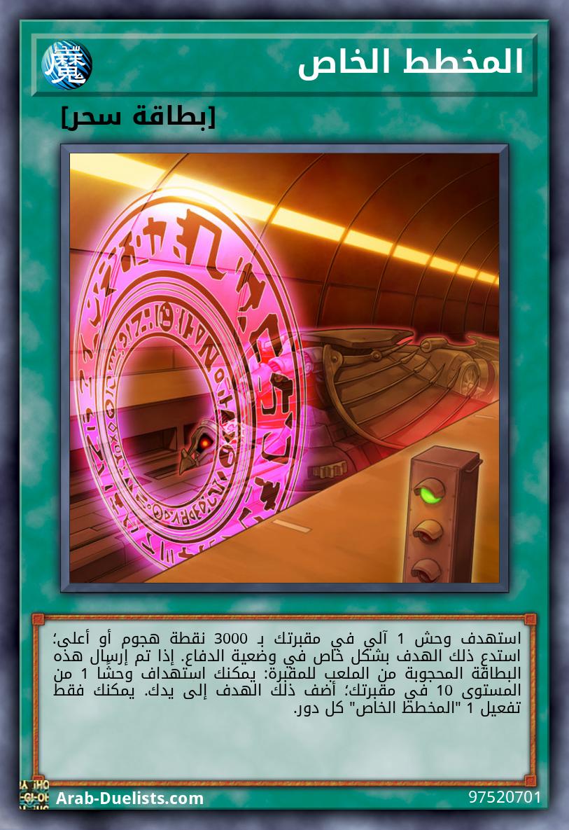 استهدف وحش 1 آلي في مقبرتك بـ 3000 نقطة هجوم أو أعلى؛ استدعِ ذلك الهدف بشكل خاص في وضعية الدفاع. إذا تم إرسال هذه البطاقة المحجوبة من الملعب للمقبرة: يمكنك استهداف وحشًا 1 من المستوى 10 في مقبرتك؛ أضف ذلك الهدف إلى يدك. يمكنك فقط تفعيل 1 "المخطط الخاص" كل دور. |