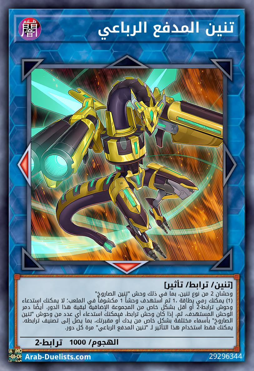 وحشان 2 من نوع تنين، بما في ذلك وحش "تنين الصاروخ" (1) يمكنك رمي بطاقة 1، ثم استهدف وحشاً 1 مكشوفاً في الملعب؛ لا يمكنك استدعاء وحوش ترابط-2 أو أقل بشكل خاص من المجموعة الإضافية لبقية هذا الدور، أيضًا دمر الوحش المستهدف، ثم، إذا كان وحش ترابط، فيمكنك استدعاء أي عدد من وحوش "تنين الصاروخ" بأسماء مختلفة بشكل خاص من يدك أو مقبرتك، بما يصل إلى تصنيف ترابطه. يمكنك فقط استخدام هذا التأثير لـ "تنين المدفع الرباعي" مرة كل دور.
