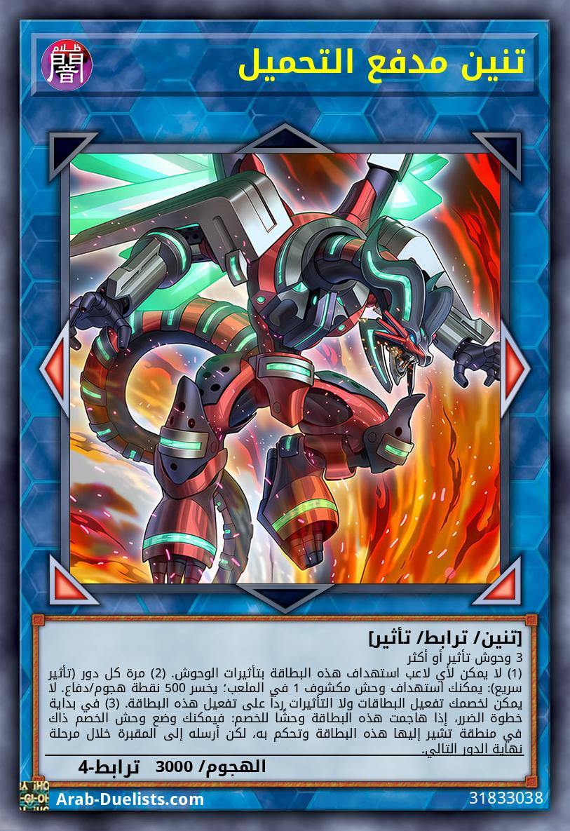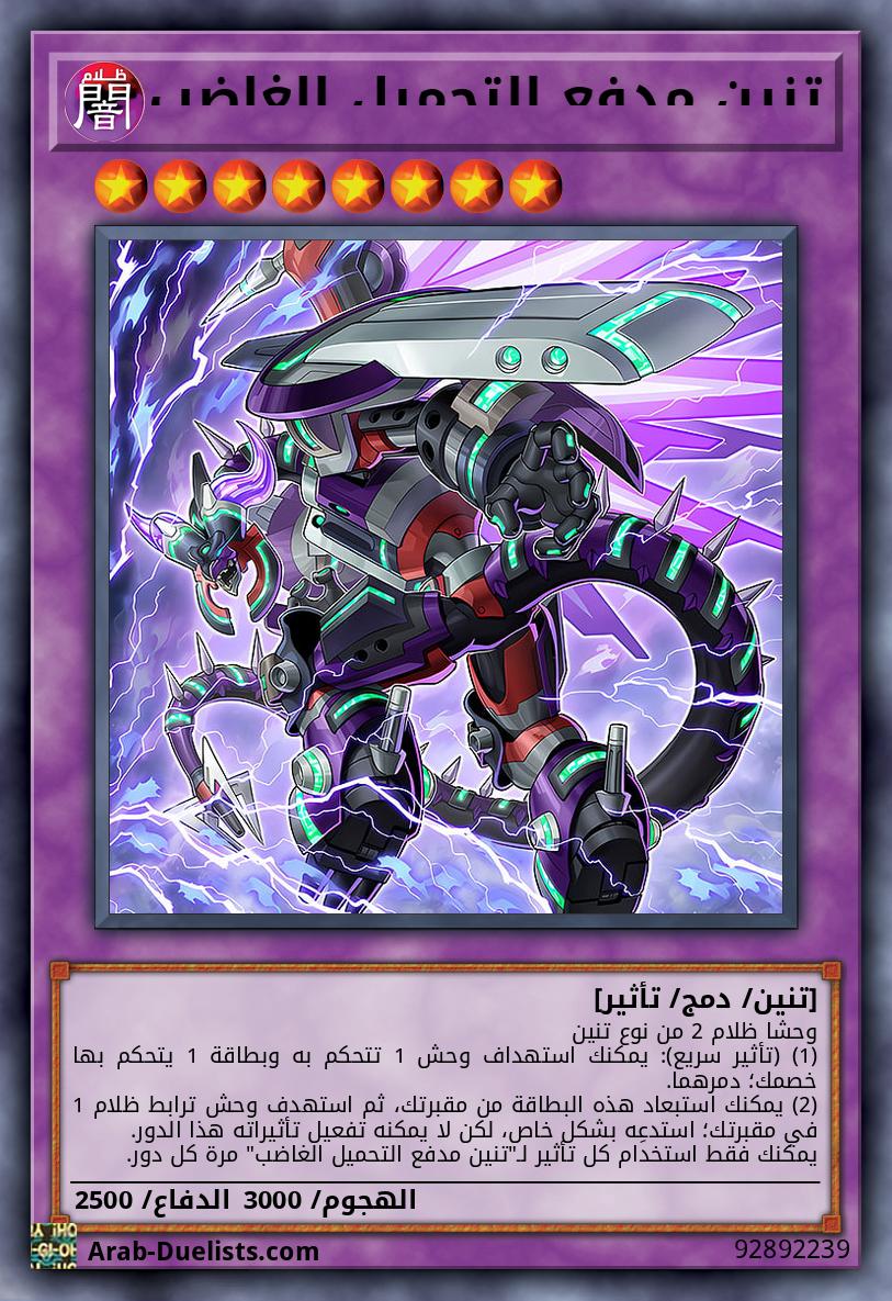 وحشا ظلام 2 من نوع تنين (1) (تأثير سريع): يمكنك استهداف وحش 1 تتحكم به وبطاقة 1 يتحكم بها خصمك؛ دمرهما. (2) يمكنك استبعاد هذه البطاقة من مقبرتك، ثم استهدف وحش ترابط ظلام 1 في مقبرتك؛ استدعِه بشكل خاص، لكن لا يمكنه تفعيل تأثيراته هذا الدور. يمكنك فقط استخدام كل تأثير لـ"تنين مدفع التحميل الغاضب" مرة كل دور.