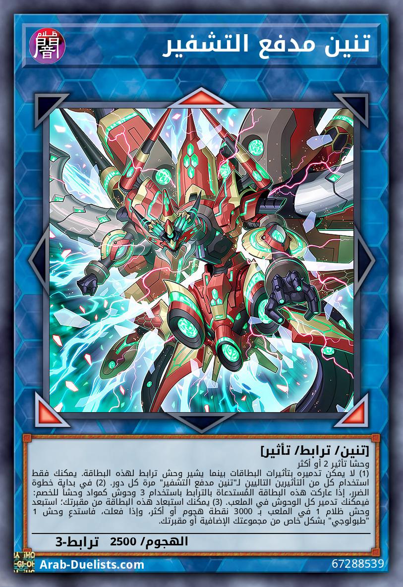 وحشا تأثير 2 أو أكثر (1) لا يمكن تدميره بتأثيرات البطاقات بينما يشير وحش ترابط لهذه البطاقة. يمكنك فقط استخدام كل من التأثيرين التاليين لـ"تنين مدفع التشفير" مرة كل دور. (2) في بداية خطوة الضرر، إذا عاركت هذه البطاقة المُستدعاة بالترابط باستخدام 3 وحوش كمواد وحشاً للخصم: فيمكنك تدمير كل الوحوش في الملعب. (3) يمكنك استبعاد هذه البطاقة من مقبرتك؛ استبعد وحش ظلام 1 في الملعب بـ 3000 نقطة هجوم أو أكثر، وإذا فعلت، فاستدعِ وحش 1 "طبولوجي" بشكل خاص من مجموعتك الإضافية أو مقبرتك.