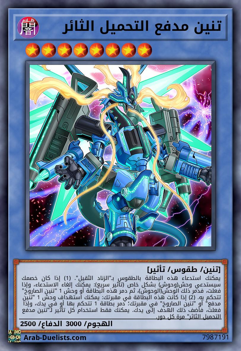 يمكنك استدعاء هذه البطاقة بالطقوس بـ"الزناد الثقيل". (1) إذا كان خصمك سيستدعي وحش(وحوش) بشكل خاص (تأثير سريع): يمكنك إلغاء الاستدعاء، وإذا فعلت، فدمر ذلك الوحش(الوحوش)، ثم دمر هذه البطاقة أو وحش 1 "تنين الصاروخ" تتحكم به. (2) إذا كانت هذه البطاقة في مقبرتك: يمكنك استهداف وحش 1 "تنين مدفع" أو "تنين الصاروخ" في مقبرتك؛ دمر بطاقة 1 تتحكم بها أو في يدك، وإذا فعلت، فأضف ذلك الهدف إلى يدك. يمكنك فقط استخدام كل تأثير لـ"تنين مدفع التحميل الثائر" مرة كل دور.