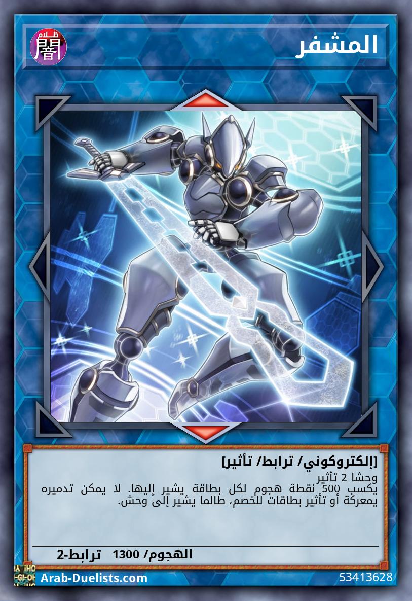 عندما تُفعَّل بطاقة سحر/فخ، أو تأثير وحش، بينما تتحكم بوحش "المشفر المتكلم": ألغِ التفعيل، وإذا فعلت، استبعد تلك البطاقة، وإذا فعلت، لا يمكن لخصمك تفعيل بطاقات أو تأثيرات، بنفس الاسم الأصلي لتلك البطاقة التي استُبعِدت، حتى نهاية الدور القادم. يمكنك فقط تفعيل 1 "الاشتباك الإلكتروشبكي" كل دور.