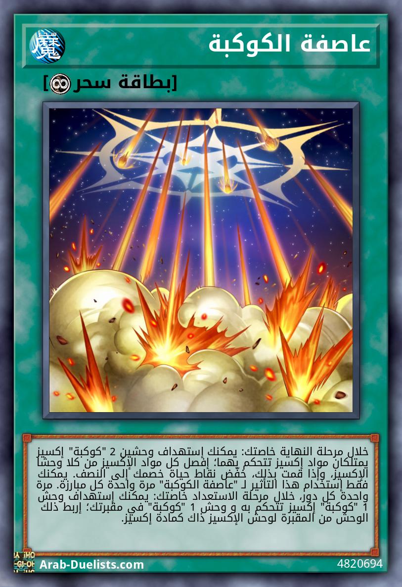 خلال مرحلة النهاية خاصتك: يمكنك إستهداف وحشين 2 "كوكبة" إكسيز يمتلكان مواد إكسيز تتحكم بهما؛ إفصل كل مواد الإكسيز من كلا وحشا الإكسيز، وإذا قمت بذلك، خفّض نقاط حياة خصمك إلى النصف. يمكنك فقط إستخدام هذا التأثير لـ "عاصفة الكوكبة" مرة واحدة كل مبارزة. مرة واحدة كل دور، خلال مرحلة الاستعداد خاصتك: يمكنك إستهداف وحش 1 "كوكبة" إكسيز تتحكم به و وحش 1 "كوكبة" في مقبرتك؛ إربط ذلك الوحش من المقبرة لوحش الإكسيز ذاك كمادة إكسيز.