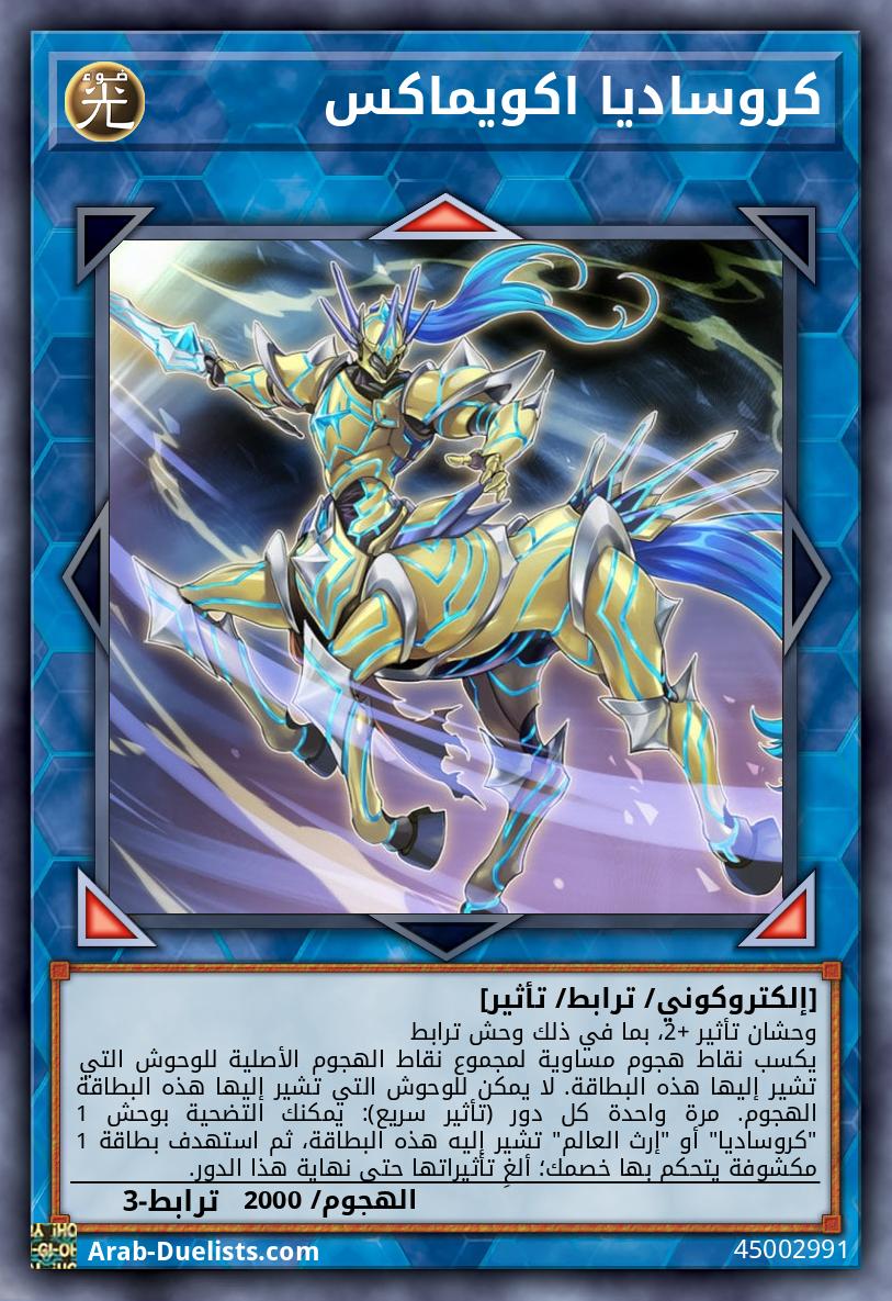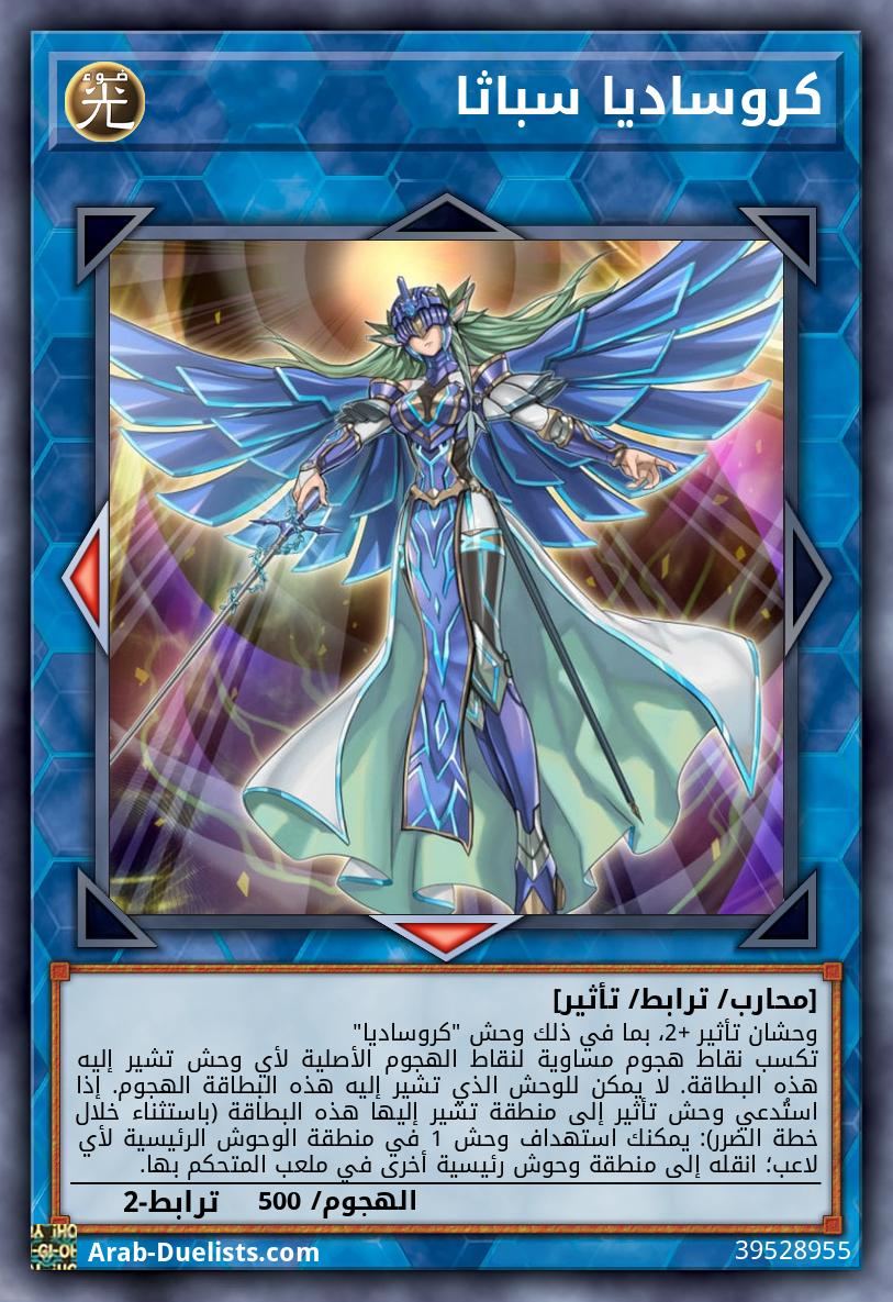 جميع وحوش ترابط "كروساديا" في الملعب تكسب 500 نقطة هجوم. مرة واحدة كل دور: يمكنك استهداف وحش ترابط 1 "كروساديا" تتحكم به؛ هذا الدور (حتى لو غادرت هذه البطاقة الملعب)، يمكنه الهجوم على جميع الوحوش التي يتحكم بها خصمك مرة واحدة لكل واحد، أيضًا الوحوش الأخرى التي تتحكم بها لا يمكنها الهجوم.