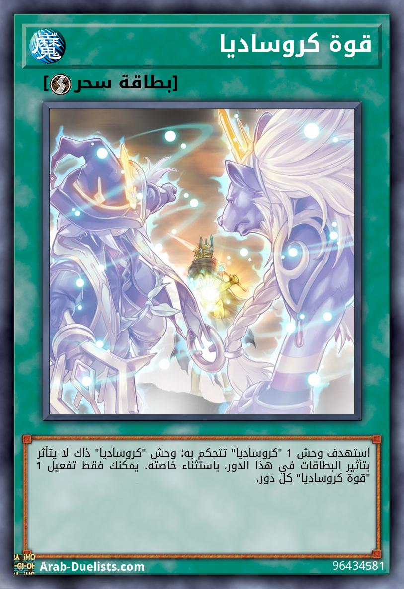 استهدف وحش 1 "كروساديا" تتحكم به؛ وحش "كروساديا" ذاك لا يتأثر بتأثير البطاقات في هذا الدور، باستثناء خاصته. يمكنك فقط تفعيل 1 "قوة كروساديا" كل دور.