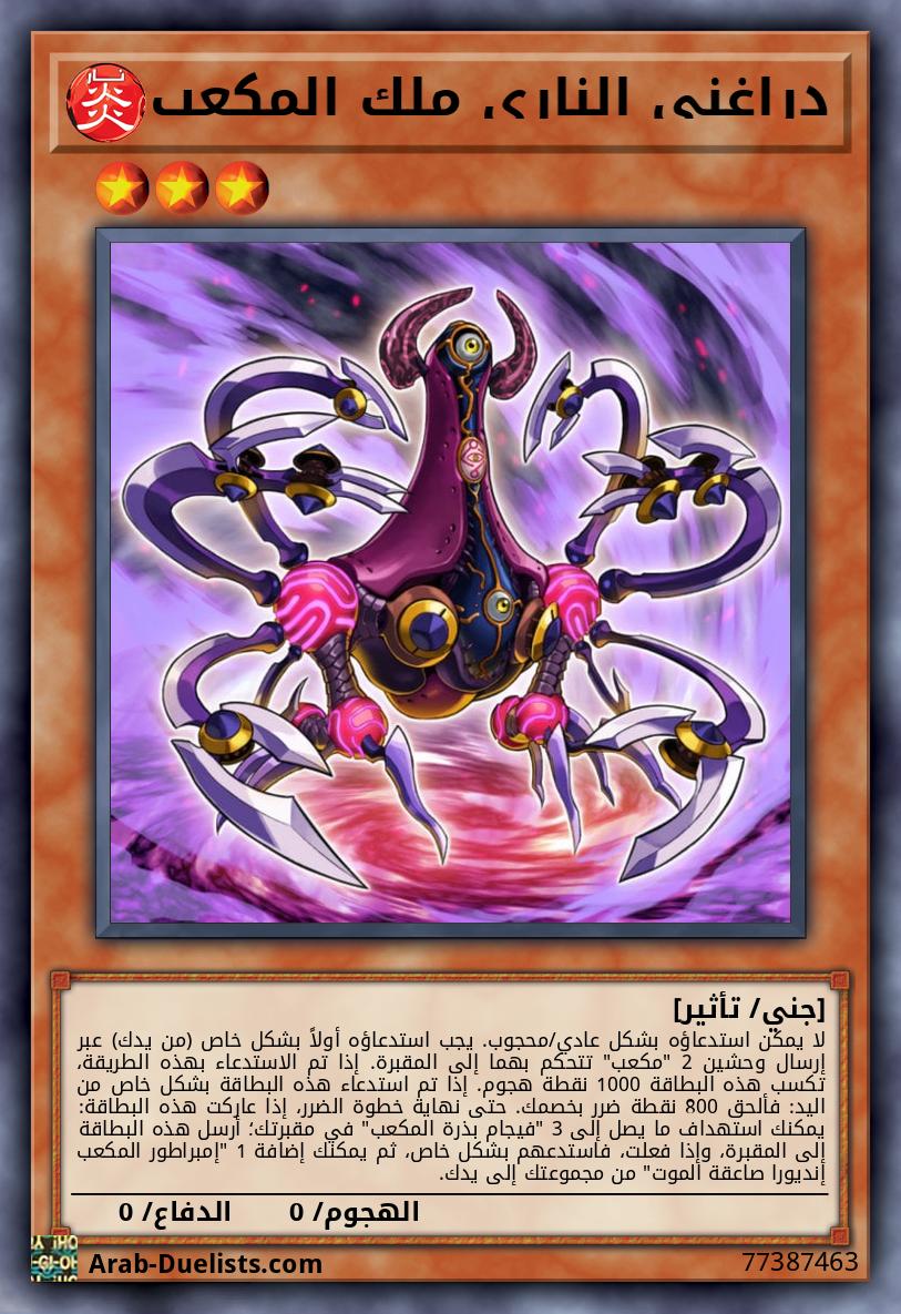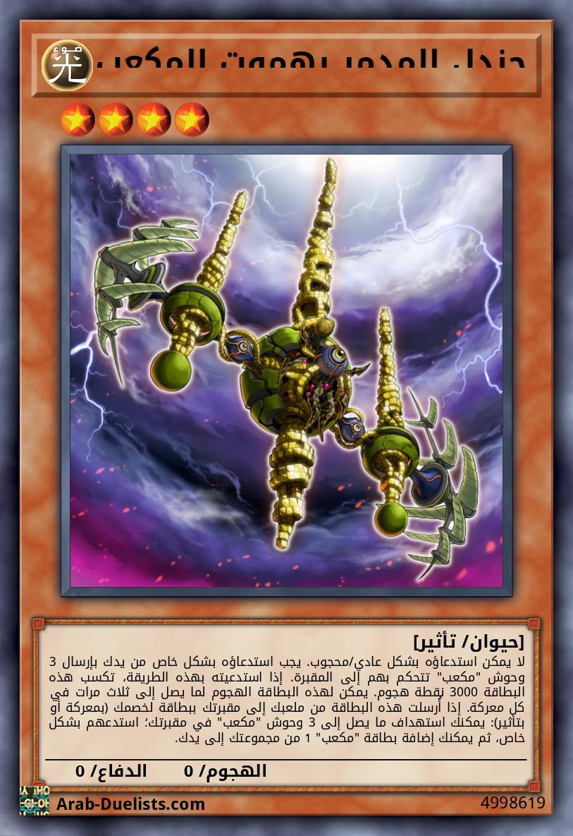 لا يمكن استدعاؤه بشكل عادي/محجوب. يجب استدعاؤه بشكل خاص من يدك بإرسال 3 وحوش "مكعب" تتحكم بهم إلى المقبرة. إذا استدعيته بهذه الطريقة، تكسب هذه البطاقة 3000 نقطة هجوم. يمكن لهذه البطاقة الهجوم لما يصل إلى ثلاث مرات في كل معركة. إذا أُرسلت هذه البطاقة من ملعبك إلى مقبرتك ببطاقة لخصمك (بمعركة أو بتأثير): يمكنك استهداف ما يصل إلى 3 وحوش "مكعب" في مقبرتك؛ استدعهم بشكل خاص، ثم يمكنك إضافة بطاقة "مكعب" 1 من مجموعتك إلى يدك.