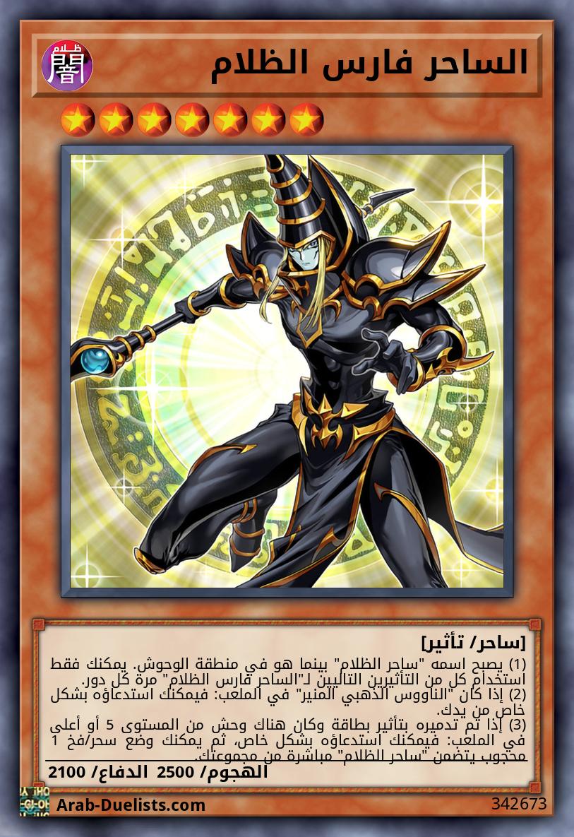 (1) يصبح اسمه "ساحر الظلام" بينما هو في منطقة الوحوش. يمكنك فقط استخدام كل من التأثيرين التاليين لـ"الساحر فارس الظلام" مرة كل دور. (2) إذا كان "الناووس الذهبي المنير" في الملعب: فيمكنك استدعاؤه بشكل خاص من يدك. (3) إذا تم تدميره بتأثير بطاقة وكان هناك وحش من المستوى 5 أو أعلى في الملعب: فيمكنك استدعاؤه بشكل خاص، ثم يمكنك وضع سحر/فخ 1 محجوب يتضمن "ساحر الظلام" مباشرة من مجموعتك.