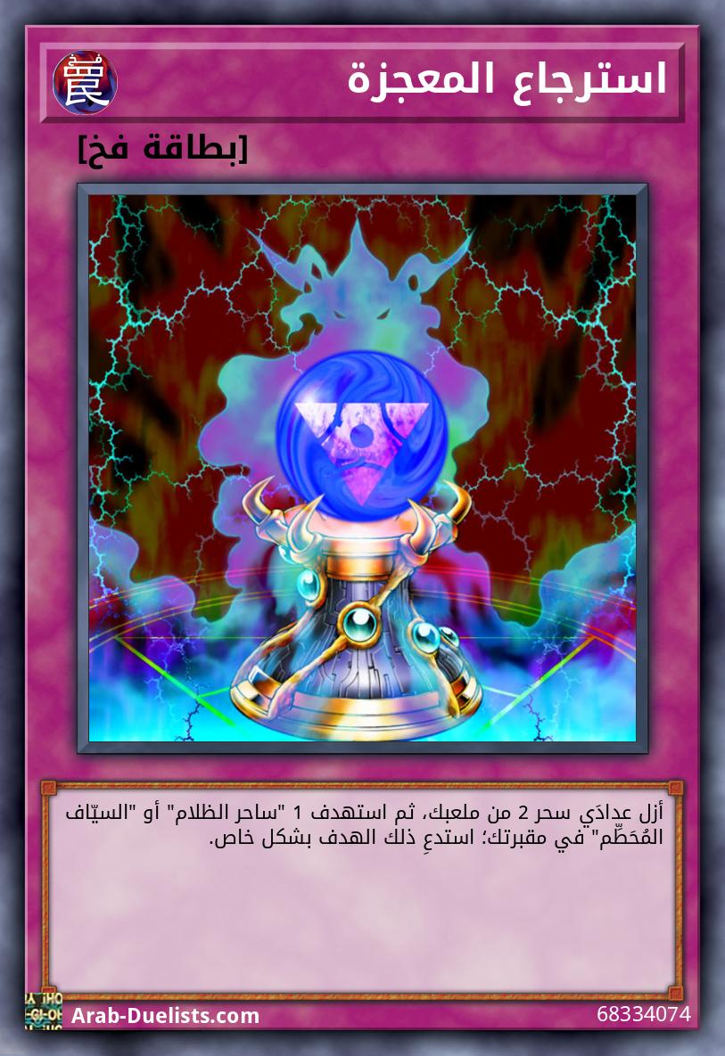 أزل عدادَي سحر 2 من ملعبك، ثم استهدف 1 "ساحر الظلام" أو "السيّاف المُحَطِّم" في مقبرتك؛ استدعِ ذلك الهدف بشكل خاص.