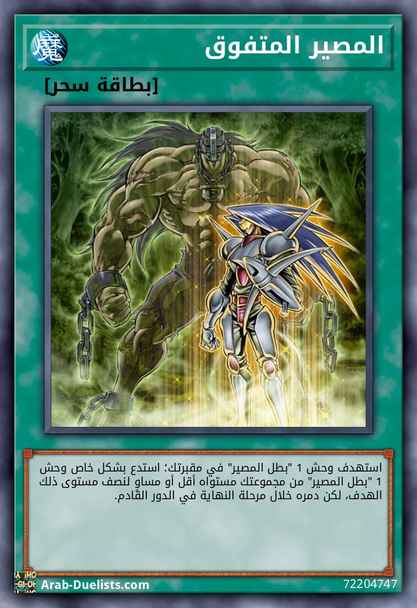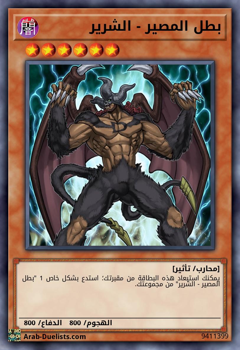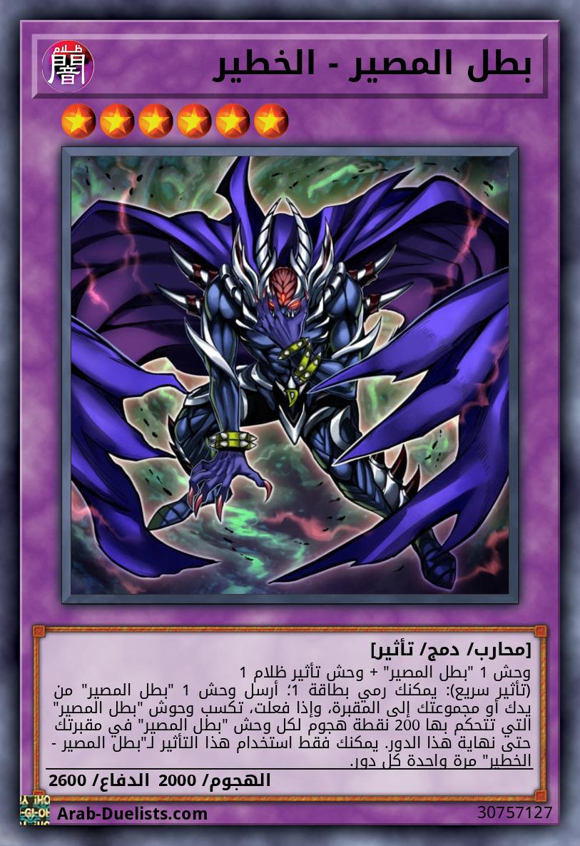 عندما يهاجِم وحش "بطل المصير"، إذا كانت نقاط هجومه أقل من نقاط هجوم الهدف، يكسب الوحش المهاجِم 1000 نقطة هجوم خلال حساب الضرر فقط.
