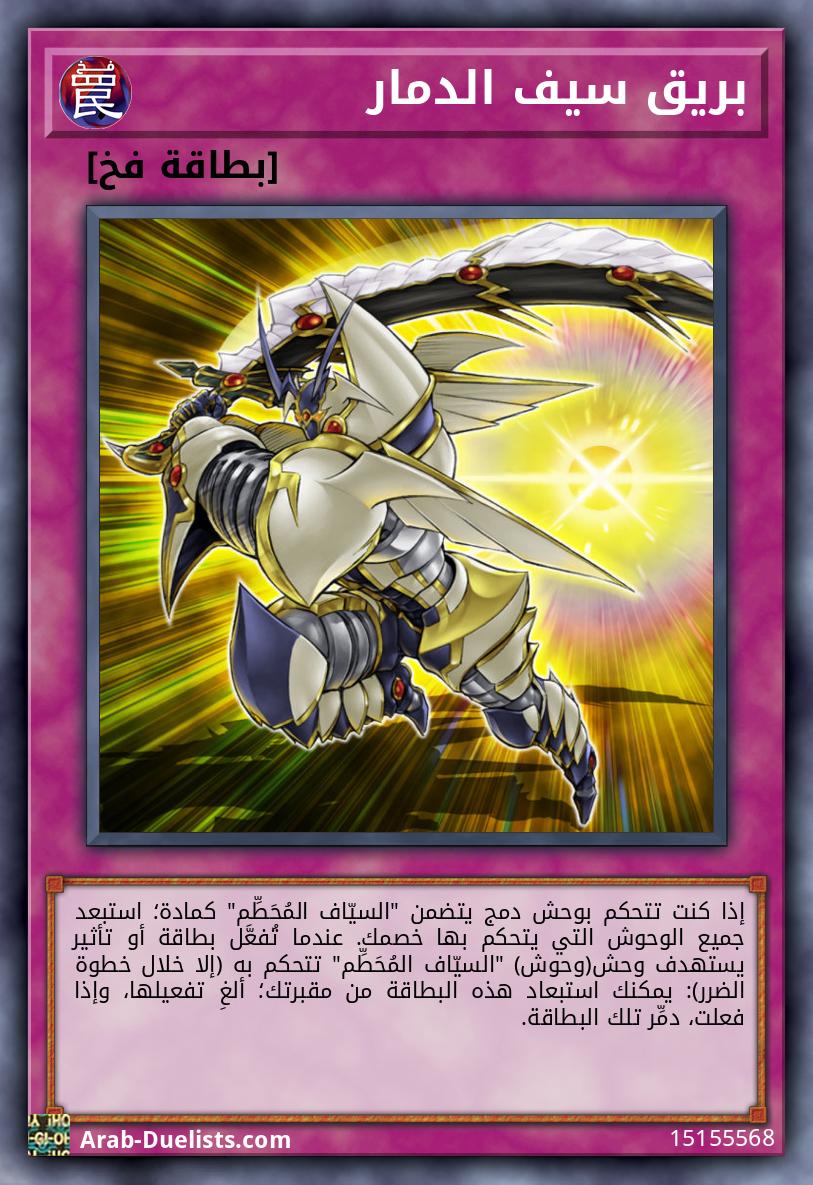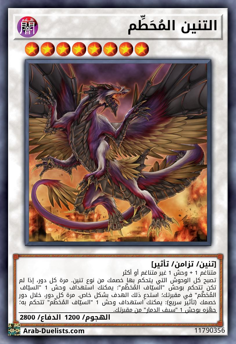 متناغم 1 + وحش 1 غير متناغم أو أكثر تصبح كل الوحوش التي يتحكم بها خصمك من نوع تنين. مرة كل دور، إذا لم تكن تتحكم بوحش "السيّاف المُحَطِّم": يمكنك استهداف وحش 1 "السيّاف المُحَطِّم" في مقبرتك؛ استدعِ ذلك الهدف بشكل خاص. مرة كل دور، خلال دور خصمك (تأثير سريع): يمكنك استهداف وحش 1 "السيّاف المُحَطِّم" تتحكم به؛ جهّزه بوحش 1 "سيف الدمار" من مقبرتك.