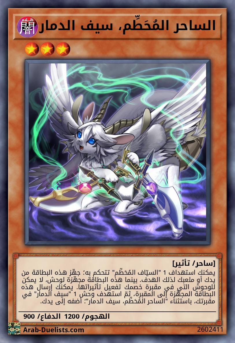 يمكنك استهداف 1 "السيّاف المُحَطِّم" تتحكم به؛ جهّز هذه البطاقة من يدك أو ملعبك لذلك الهدف. بينما هذه البطاقة مجهّزة لوحش، لا يمكن للوحوش التي في مقبرة خصمك تفعيل تأثيراتها. يمكنك إرسال هذه البطاقة المجهّزة إلى المقبرة، ثمّ استهدف وحش 1 "سيف الدمار" في مقبرتك، باستثناء "الساحر المُحَطِّم، سيف الدمار"؛ أضفه إلى يدك.