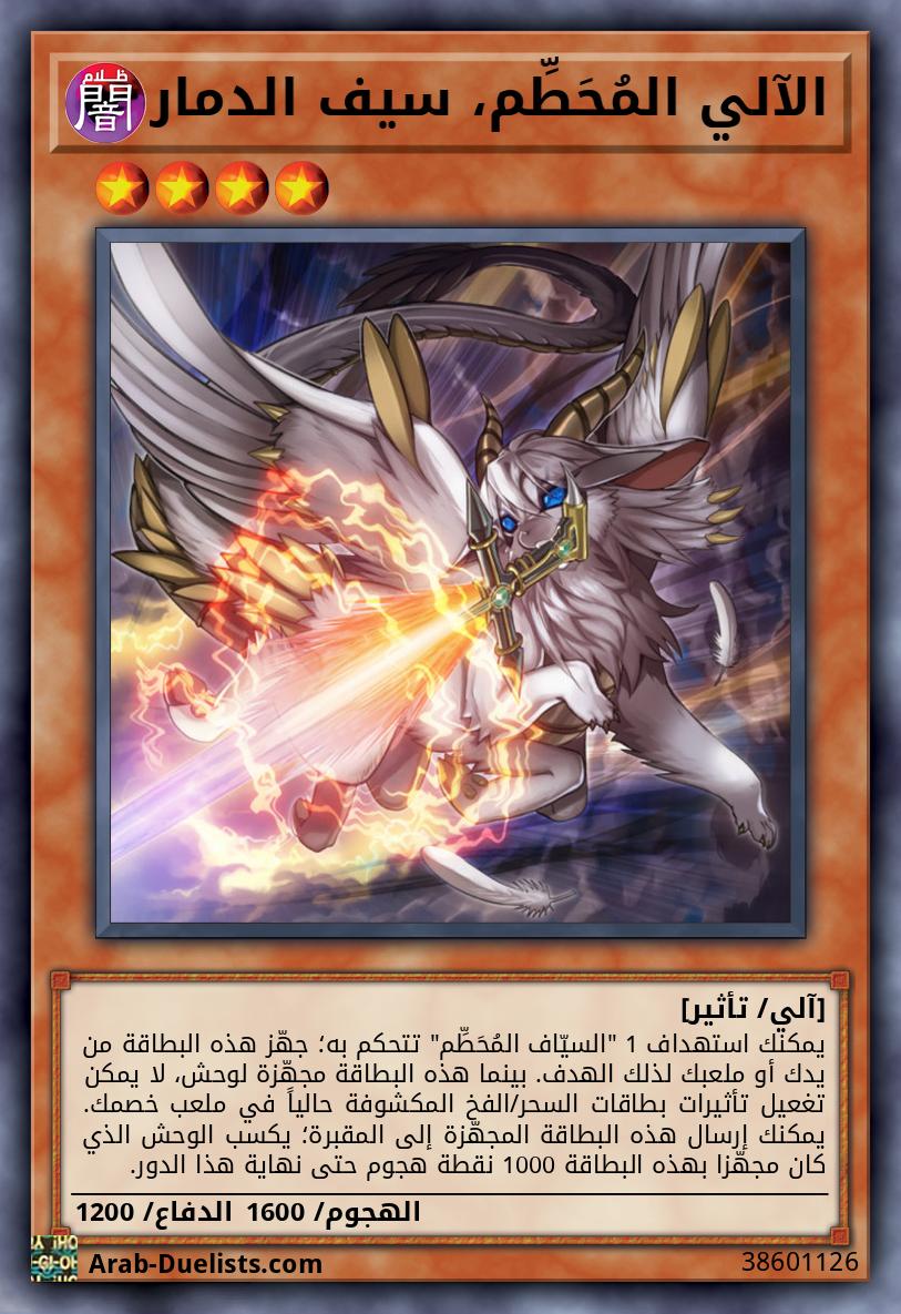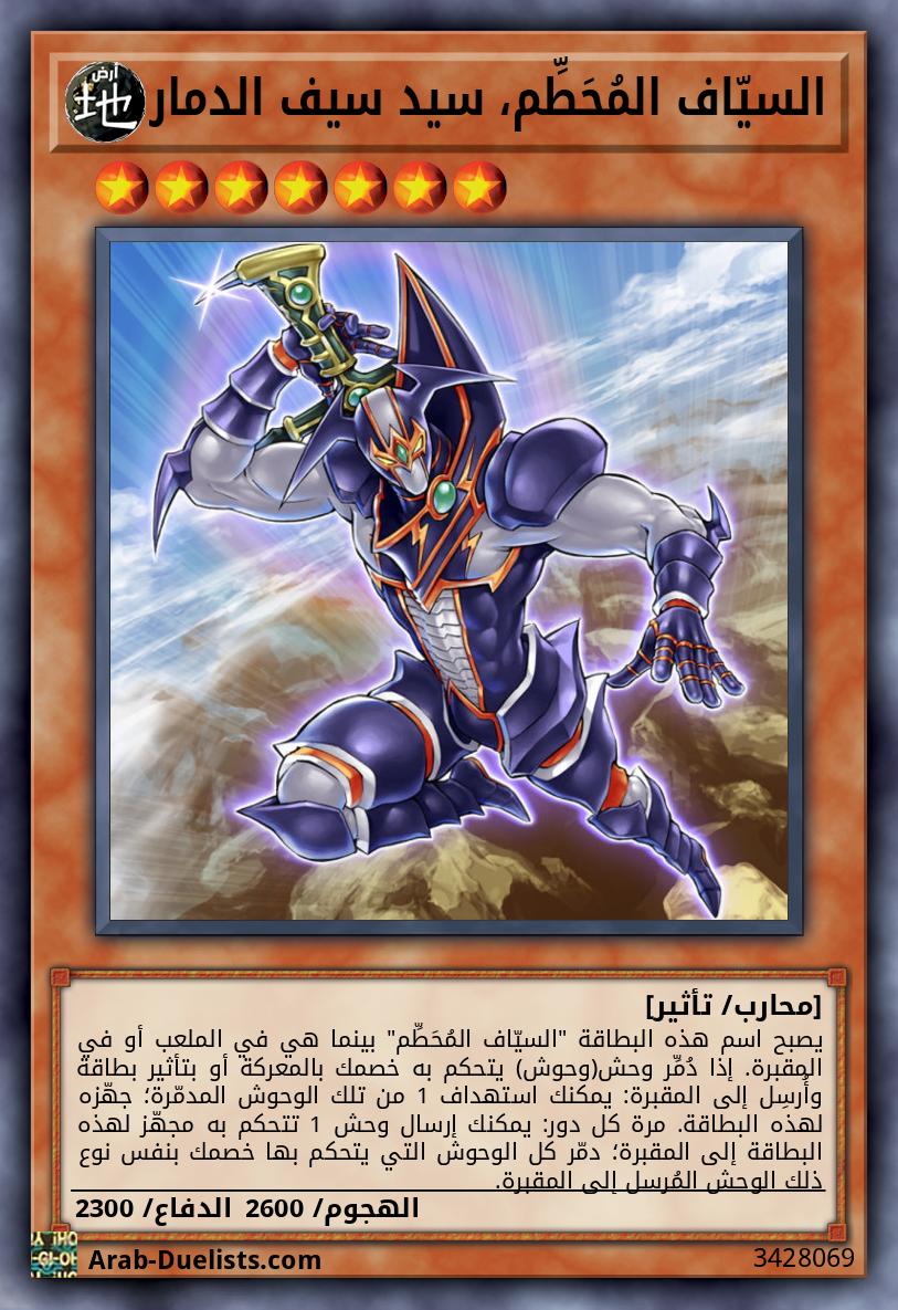 يصبح اسم هذه البطاقة "السيّاف المُحَطِّم" بينما هي في الملعب أو في المقبرة. إذا دُمِّر وحش(وحوش) يتحكم به خصمك بالمعركة أو بتأثير بطاقة وأُرسِل إلى المقبرة: يمكنك استهداف 1 من تلك الوحوش المدمّرة؛ جهّزه لهذه البطاقة. مرة كل دور: يمكنك إرسال وحش 1 تتحكم به مجهّز لهذه البطاقة إلى المقبرة؛ دمّر كل الوحوش التي يتحكم بها خصمك بنفس نوع ذلك الوحش المُرسل إلى المقبرة.