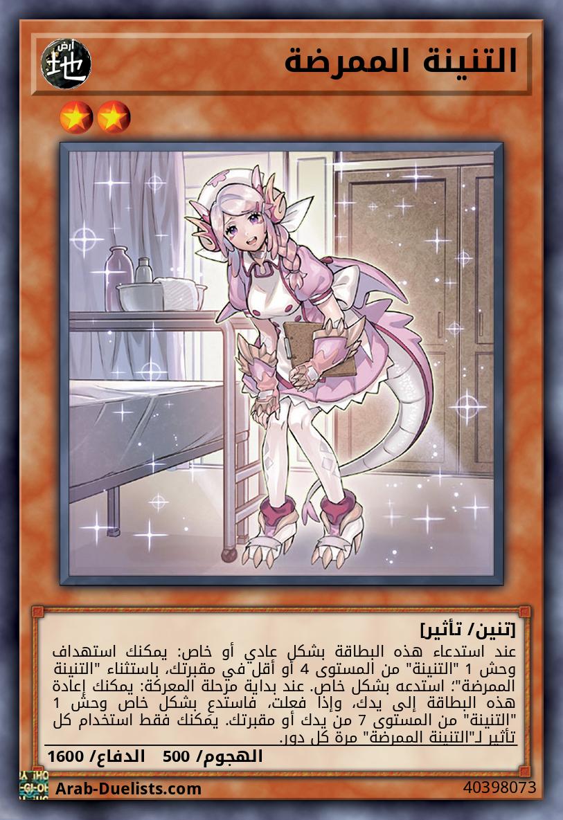 عند استدعاء هذه البطاقة بشكل عادي أو خاص: يمكنك استهداف وحش 1 "التنينة" من المستوى 4 أو أقل في مقبرتك، باستثناء "التنينة الممرضة"؛ استدعه بشكل خاص. عند بداية مرحلة المعركة: يمكنك إعادة هذه البطاقة إلى يدك، وإذا فعلت، فاستدعِ بشكل خاص وحش 1 "التنينة" من المستوى 7 من يدك أو مقبرتك. يمكنك فقط استخدام كل تأثير لـ"التنينة الممرضة" مرة كل دور.