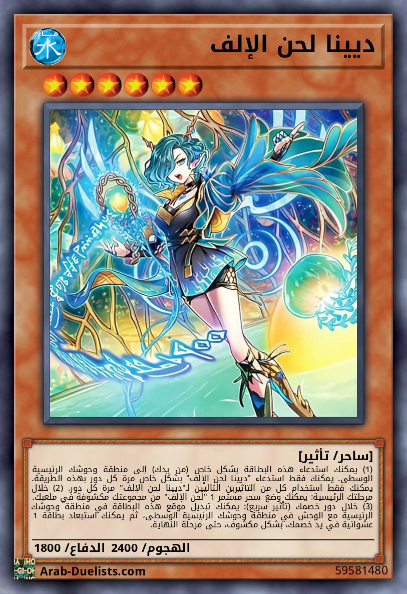 (1) يمكنك استدعاء هذه البطاقة بشكل خاص (من يدك) إلى منطقة وحوشك الرئيسية الوسطى. يمكنك فقط استدعاء "ديينا لحن الإلف" بشكل خاص مرة كل دور بهذه الطريقة. يمكنك فقط استخدام كل من التأثيرين التاليين لـ"ديينا لحن الإلف" مرة كل دور. (2) خلال مرحلتك الرئيسية: يمكنك وضع سحر مستمر 1 "لحن الإلف" من مجموعتك مكشوفة في ملعبك. (3) خلال دور خصمك (تأثير سريع): يمكنك تبديل موقع هذه البطاقة في منطقة وحوشك الرئيسية مع الوحش في منطقة وحوشك الرئيسية الوسطى، ثم يمكنك استبعاد بطاقة 1 عشوائية في يد خصمك، بشكل مكشوف، حتى مرحلة النهاية.