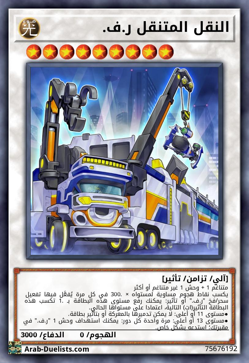 إذا كانت هذه البطاقة في يدك أو مقبرتك: يمكنك استهداف وحش 1 "ر.ف." تتحكم به يكون مستواه الحالي أعلى من مستواه الأصلي؛ استدعِ هذه البطاقة بشكل خاص، وإذا فعلت، خفّض مستوى ذلك الهدف بمقدار الفارق بين مستواه الحالي و مستواه الأصلي، وإذا فعلت، يصبح مستوى هذه البطاقة مساويا للقيمة المخفَّضة. إذا استُدعِيت هذه البطاقة بشكل عادي أو خاص: يمكنك إضافة سحر ملعب 1 "ر.ف." من مجموعتك إلى يدك. يمكنك فقط استخدام كل تأثير من "المتنقل التلقائي ر.ف." مرة واحدة كل دور.