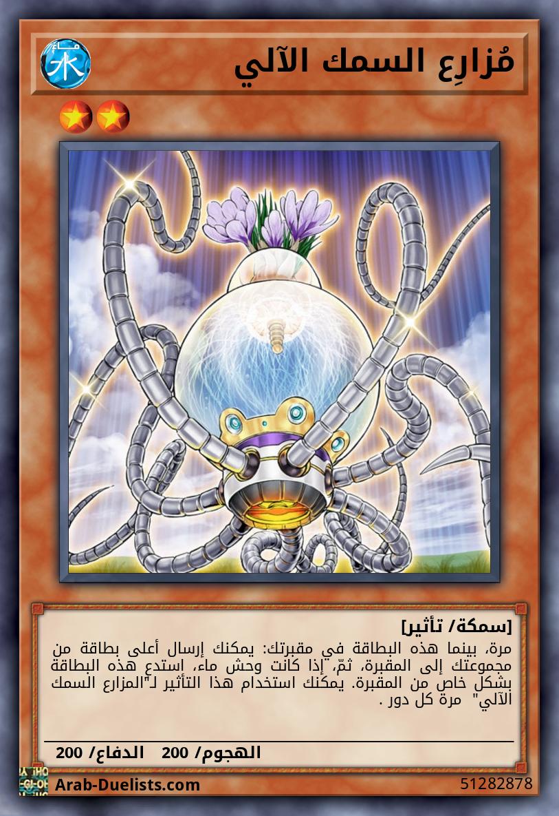 مرة، بينما هذه البطاقة في مقبرتك: يمكنك إرسال أعلى بطاقة من مجموعتك إلى المقبرة، ثمّ، إذا كانت وحش ماء، استدعِ هذه البطاقة بشكل خاص من المقبرة. يمكنك استخدام هذا التأثير لـ"المزارع السمك الآلي" مرة كل دور .