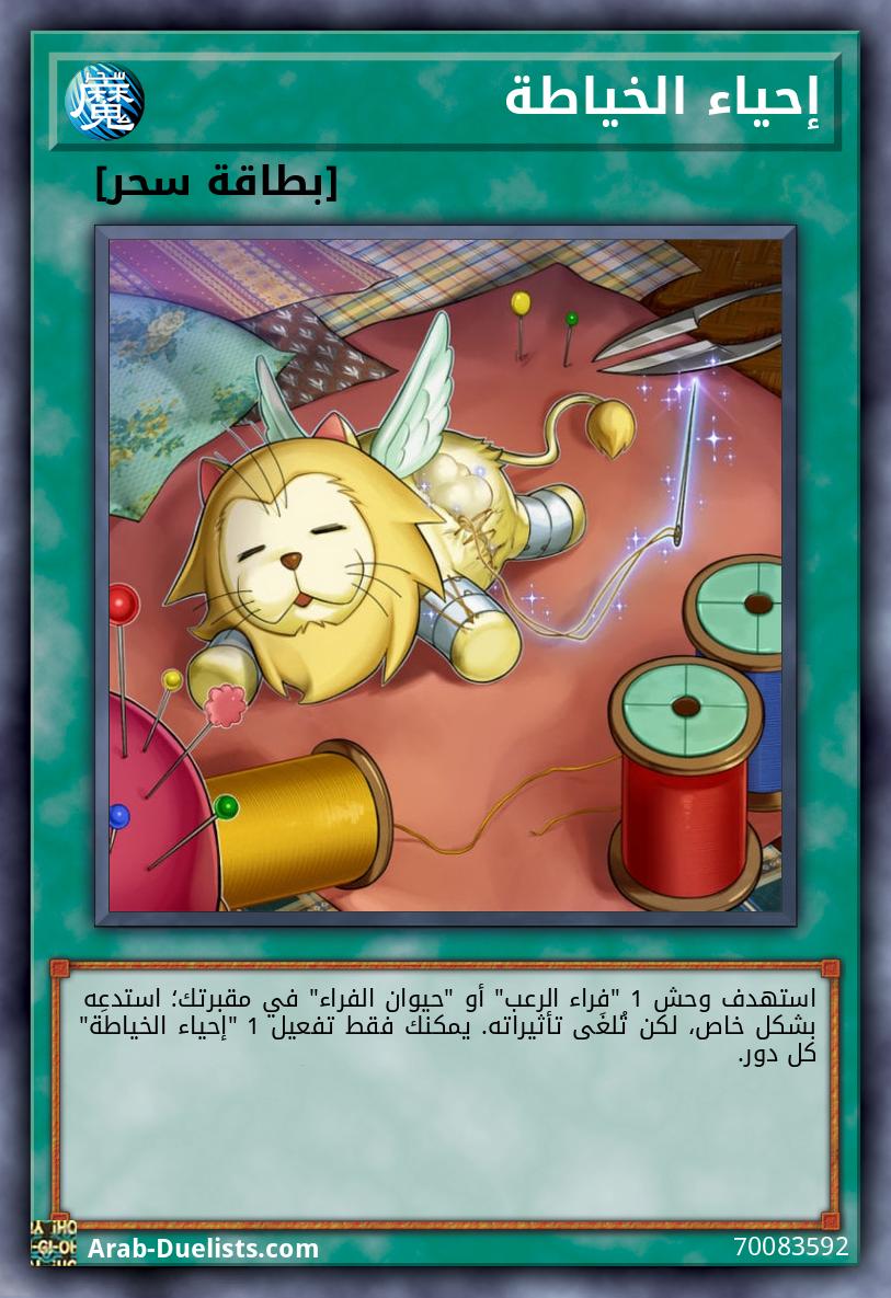 استهدف وحش 1 "فراء الرعب" أو "حيوان الفراء" في مقبرتك؛ استدعِه بشكل خاص، لكن تُلغَى تأثيراته. يمكنك فقط تفعيل 1 "إحياء الخياطة" كل دور.