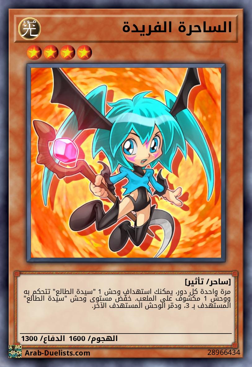 تصبح نقاط هجوم/دفاع هذه البطاقة مستواها × 200. مرة واحدة كل دور، خلال مرحلة استعدادك: ارفع مستوى هذه البطاقة بـ 1 (الاقصى. 12). عندما تغادر هذه البطاقة المكشوفة الملعب بتأثير بطاقة: يمكنك استدعاء وحش 1 "سيدة الطالع" بشكل خاص من مجموعتك.