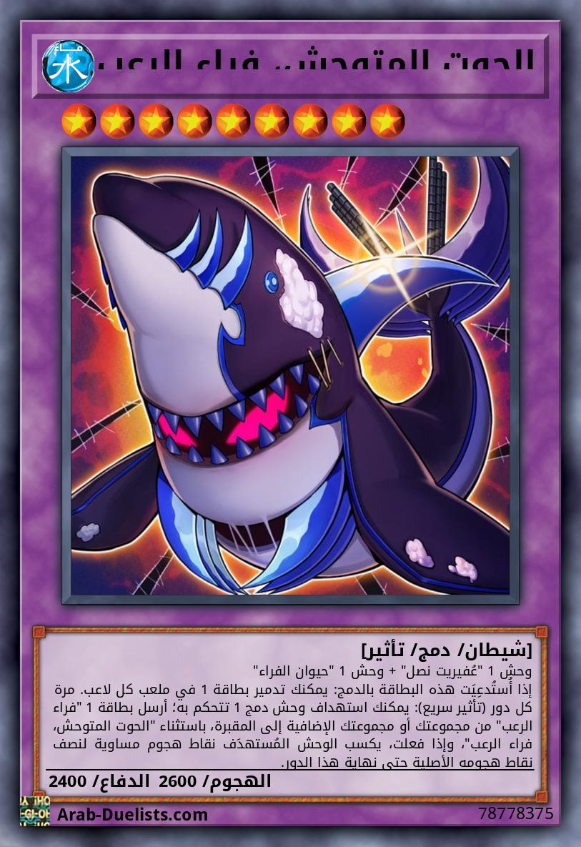 وحش 1 "عُفيريت نصل" + وحش 1 "حيوان الفراء" إذا أُستُدعِيَت هذه البطاقة بالدمج: يمكنك تدمير بطاقة 1 في ملعب كل لاعب. مرة كل دور (تأثير سريع): يمكنك استهداف وحش دمج 1 تتحكم به؛ أرسل بطاقة 1 "فراء الرعب" من مجموعتك أو مجموعتك الإضافية إلى المقبرة، باستثناء "الحوت المتوحش، فراء الرعب"، وإذا فعلت، يكسب الوحش المُستهدَف نقاط هجوم مساوية لنصف نقاط هجومه الأصلية حتى نهاية هذا الدور.