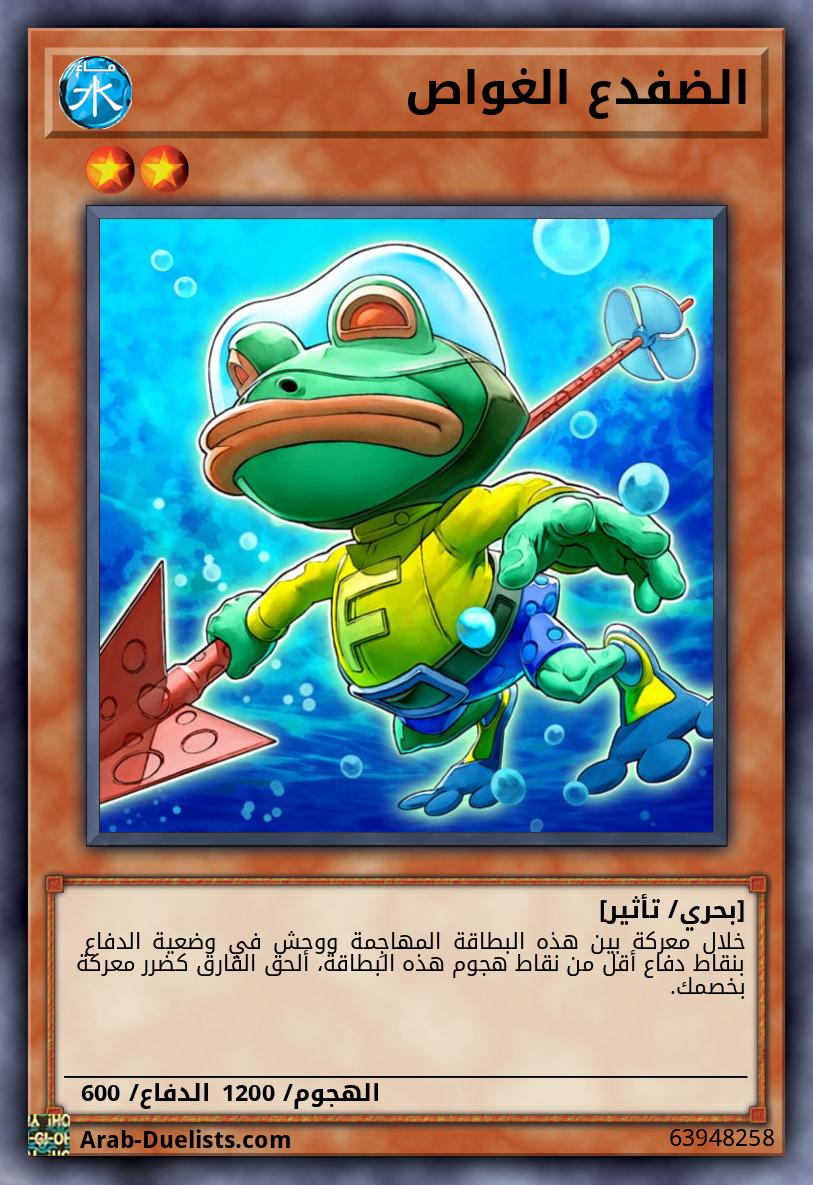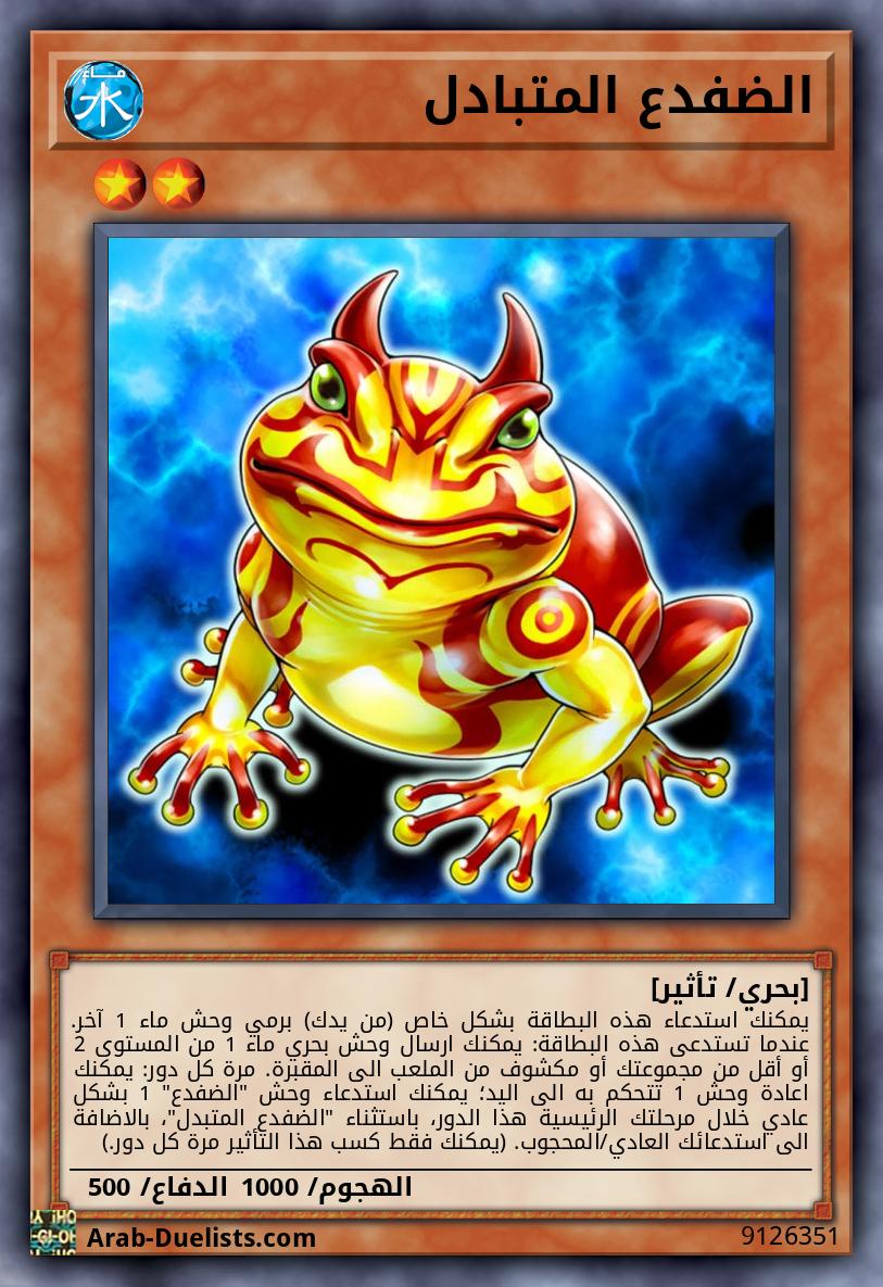 يمكنك استدعاء هذه البطاقة بشكل خاص (من يدك) برمي وحش ماء 1 آخر. عندما تستدعى هذه البطاقة: يمكنك ارسال وحش بحري ماء 1 من المستوى 2 أو أقل من مجموعتك أو مكشوف من الملعب الى المقبرة. مرة كل دور: يمكنك اعادة وحش 1 تتحكم به الى اليد؛ يمكنك استدعاء وحش "الضفدع" 1 بشكل عادي خلال مرحلتك الرئيسية هذا الدور، باستثناء "الضفدع المتبدل"، بالاضافة الى استدعائك العادي/المحجوب. (يمكنك فقط كسب هذا التأثير مرة كل دور.)
