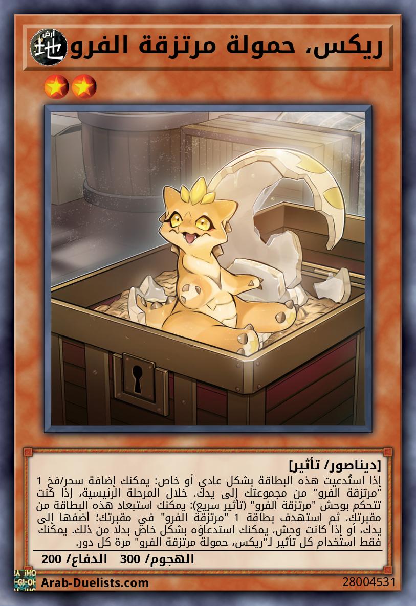 إذا استُدعيت هذه البطاقة بشكل عادي أو خاص: يمكنك إضافة سحر/فخ 1 "مرتزقة الفرو" من مجموعتك إلى يدك. خلال المرحلة الرئيسية، إذا كنت تتحكم بوحش "مرتزقة الفرو" (تأثير سريع): يمكنك استبعاد هذه البطاقة من مقبرتك، ثم استهدف بطاقة 1 "مرتزقة الفرو" في مقبرتك؛ أضفها إلى يدك، أو إذا كانت وحش، يمكنك استدعاؤه بشكل خاص بدلا من ذلك. يمكنك فقط استخدام كل تأثير لـ"ريكس، حمولة مرتزقة الفرو" مرة كل دور.
