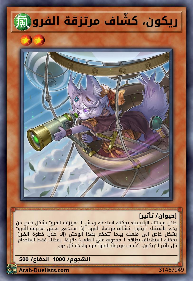 خلال مرحلتك الرئيسية: يمكنك استدعاء وحش 1 "مرتزقة الفرو" بشكل خاص من يدك، باستثناء "ريكون، كشّاف مرتزقة الفرو". إذا استُدعَي وحش "مرتزقة الفرو" بشكل خاص إلى ملعبك بينما تتحكم بهذا الوحش (إلا خلال خطوة الضرر): يمكنك استهداف بطاقة 1 محجوبة على الملعب؛ دمّرها. يمكنك فقط استخدام كل تأثير لـ"ريكون، كشّاف مرتزقة الفرو" مرة واحدة كل دور.