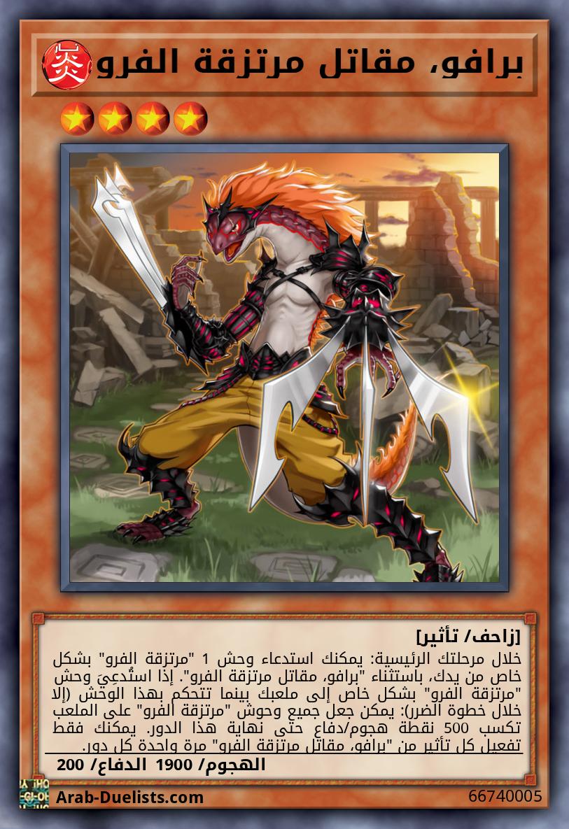 خلال مرحلتك الرئيسية: يمكنك استدعاء وحش 1 "مرتزقة الفرو" بشكل خاص من يدك، باستثناء "برافو، مقاتل مرتزقة الفرو". إذا استُدعِيَ وحش "مرتزقة الفرو" بشكل خاص إلى ملعبك بينما تتحكم بهذا الوحش (إلا خلال خطوة الضرر): يمكن جعل جميع وحوش "مرتزقة الفرو" على الملعب تكسب 500 نقطة هجوم/دفاع حتى نهاية هذا الدور. يمكنك فقط تفعيل كل تأثير من "برافو، مقاتل مرتزقة الفرو" مرة واحدة كل دور.