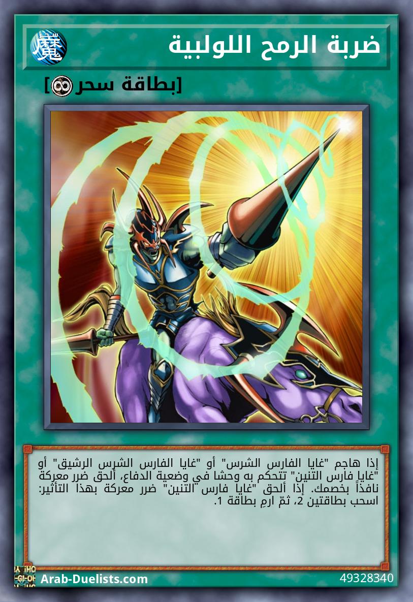 إذا هاجم "غايا الفارس الشرس" أو "غايا الفارس الشرس الرشيق" أو "غايا فارس التنين" تتحكم به وحشا في وضعية الدفاع، ألحق ضرر معركة نافذاً بخصمك. إذا ألحق "غايا فارس التنين" ضرر معركة بهذا التأثير: اسحب بطاقتين 2، ثمّ ارمِ بطاقة 1.