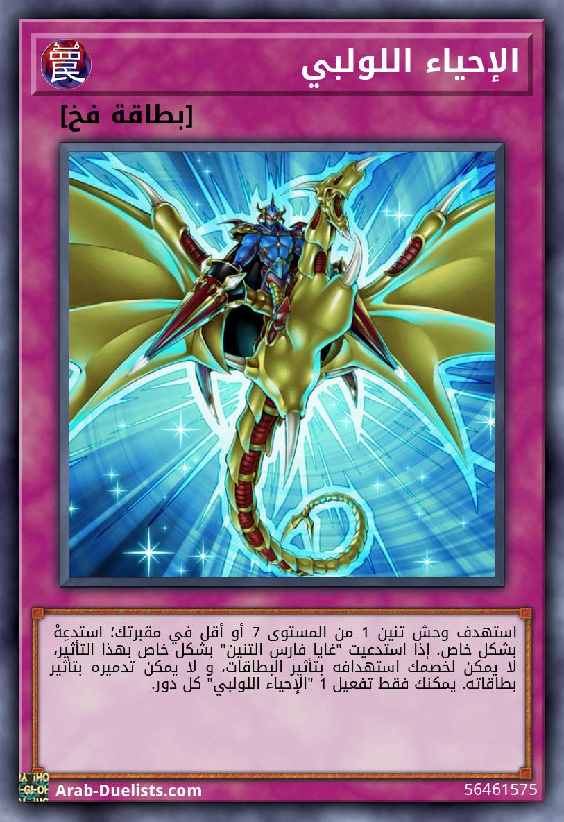 استهدف وحش تنين 1 من المستوى 7 أو أقل في مقبرتك؛ استدعِهْ بشكل خاص. إذا استدعيت "غايا فارس التنين" بشكل خاص بهذا التأثير، لا يمكن لخصمك استهدافه بتأثير البطاقات، و لا يمكن تدميره بتأثير بطاقاته. يمكنك فقط تفعيل 1 "الإحياء اللولبي" كل دور.