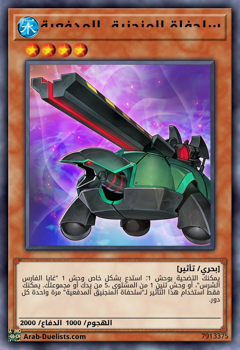 يمكنك التضحية بوحش 1؛ استدعِ بشكل خاص وحش 1 "غايا الفارس الشرس"، أو وحش تنين 1 من المستوى 5، من يدك أو مجموعتك. يمكنك فقط استخدام هذا التأثير لـ"سلحفاة المنجنيق المدفعية" مرة واحدة كل دور.
