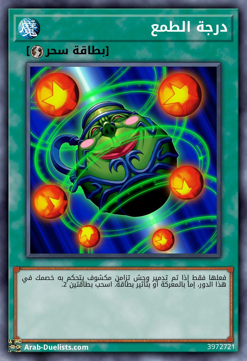 بينما توجد هذه البطاقة فى وضعية الهجوم مكشوفة على الملعب، إذا فعّل لاعب "وعاء الطمع"، يمكنه سحب بطاقة 1 إضافية.