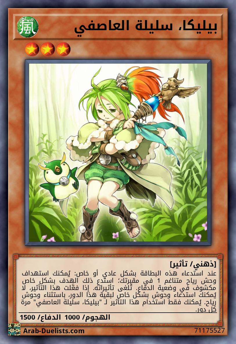 عند استدعاء هذه البطاقة بشكل عادي أو خاص: يُمكنك استهداف وحش رياح متناغم 1 في مقبرتك؛ استدعِ ذلك الهدف بشكل خاص مكشوف في وضعية الدفاع. تُلغى تأثيراته. إذا فعَّلت هذا التأثير، لا يُمكنك استدعاء وحوش بشكل خاص لبقية هذا الدور، باستثناء وحوش رياح. يُمكنك فقط استخدام هذا التأثير لـ "بيليكا، سليلة العاصفي" مرة كل دور.