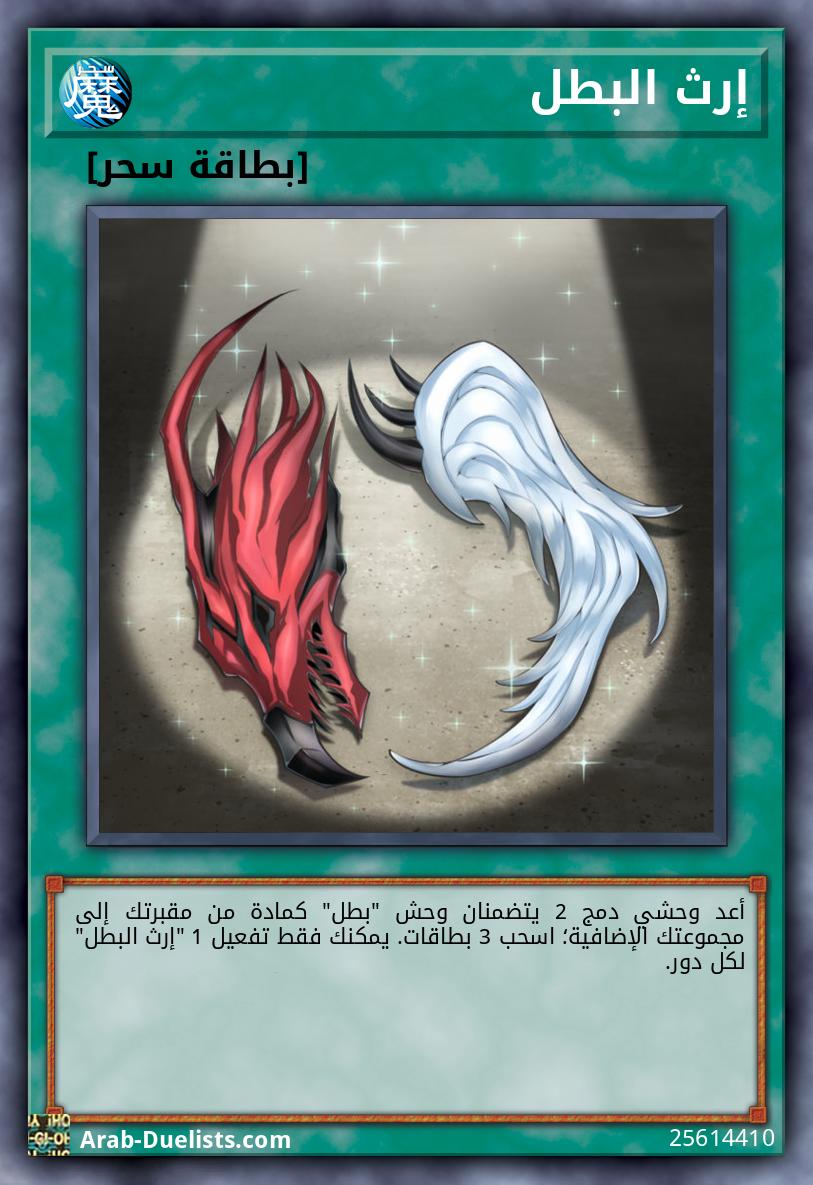 أعد وحشي دمج 2 يتضمنان وحش "بطل" كمادة من مقبرتك إلى مجموعتك الإضافية؛ اسحب 3 بطاقات. يمكنك فقط تفعيل 1 "إرث البطل" لكل دور.