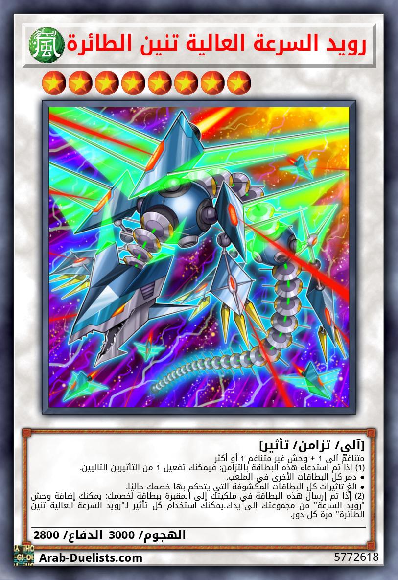 متناغم آلي 1 + وحش غير متناغم 1 أو أكثر (1) إذا تم استدعاء هذه البطاقة بالتزامن: فيمكنك تفعيل 1 من التأثيرين التاليين. ● دمر كل البطاقات الأخرى في الملعب. ● ألغِ تأثيرات كل البطاقات المكشوفة التي يتحكم بها خصمك حاليًا. (2) إذا تم إرسال هذه البطاقة في ملكيتك إلى المقبرة ببطاقة لخصمك: يمكنك إضافة وحش "رويد السرعة" من مجموعتك إلى يدك.يمكنك استخدام كل تأثير لـ"رويد السرعة العالية تنين الطائرة" مرة كل دور.